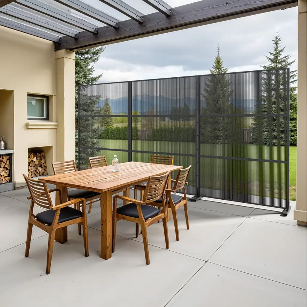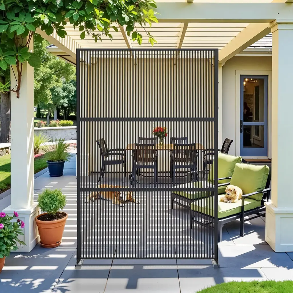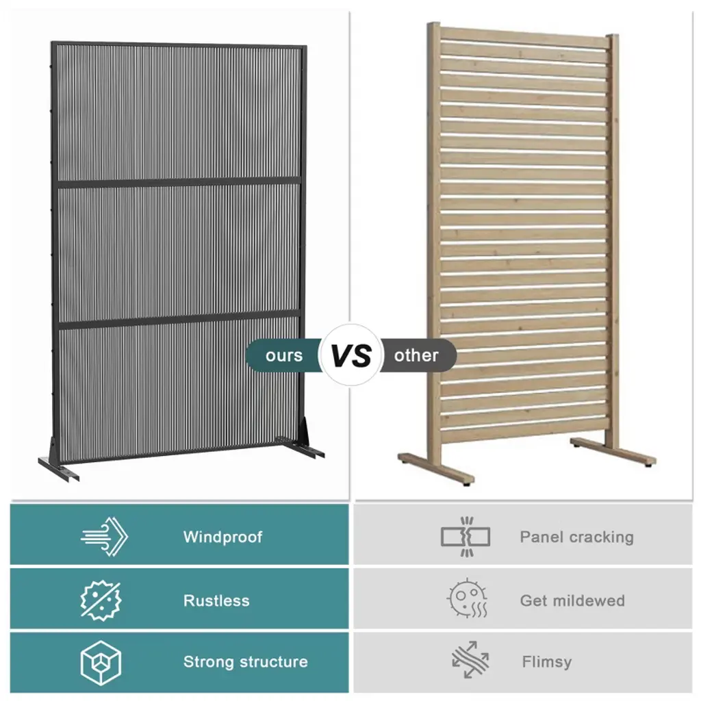 Pexfix 72 In. H X 47 In. W Outdoor Metal Rattan Vertical Stripe Black Screen Garden Fence Brick Pattern Wall