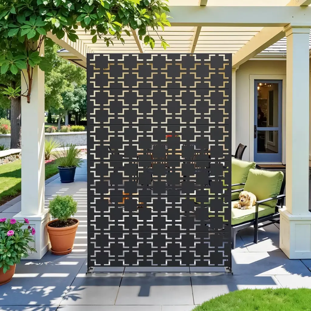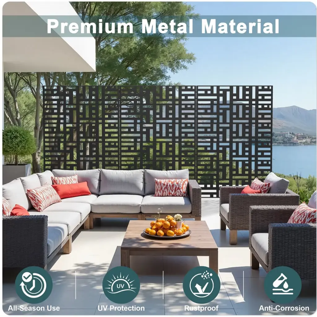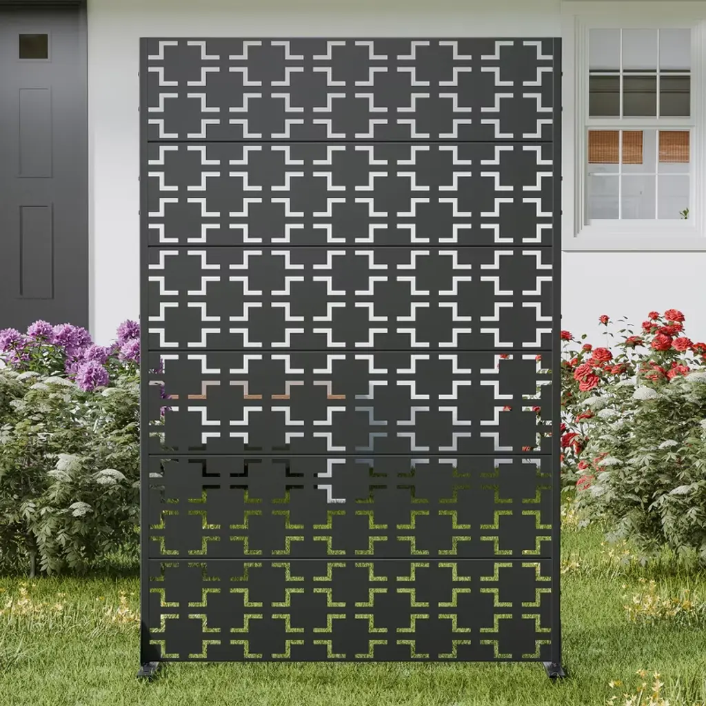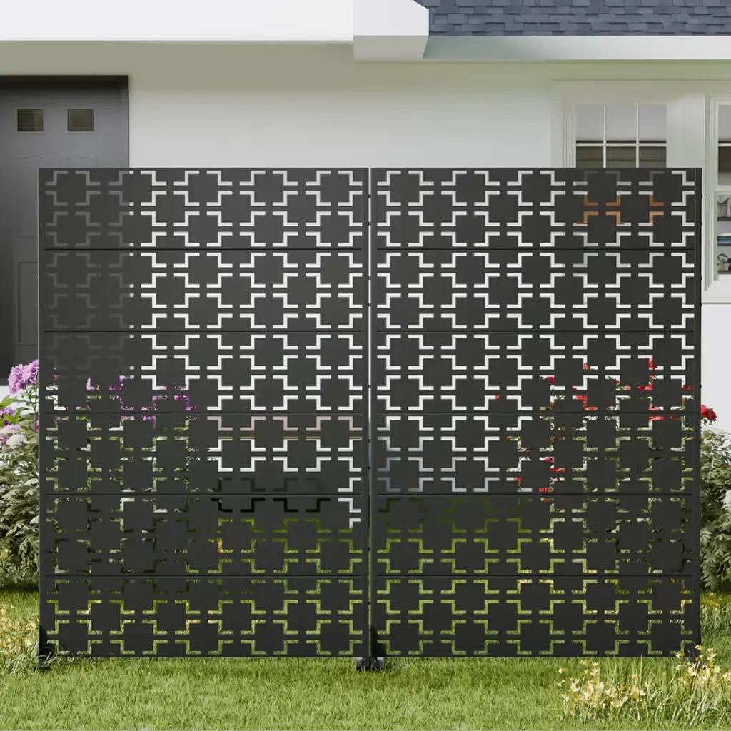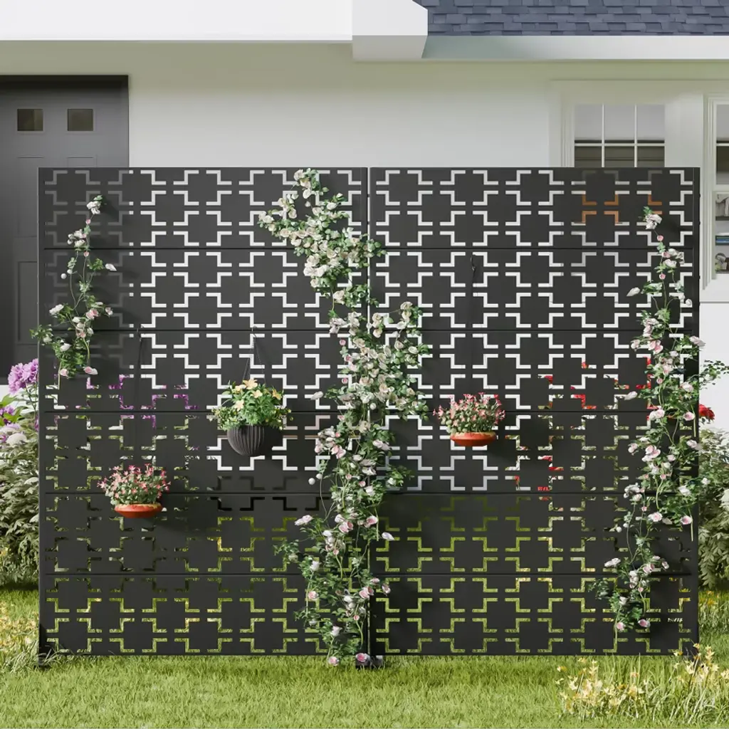 Pexfix 72 In. H X 47 In. W Outdoor Metal Square Black Galvanized Panel Screen Garden Fence Brick Pattern Walls