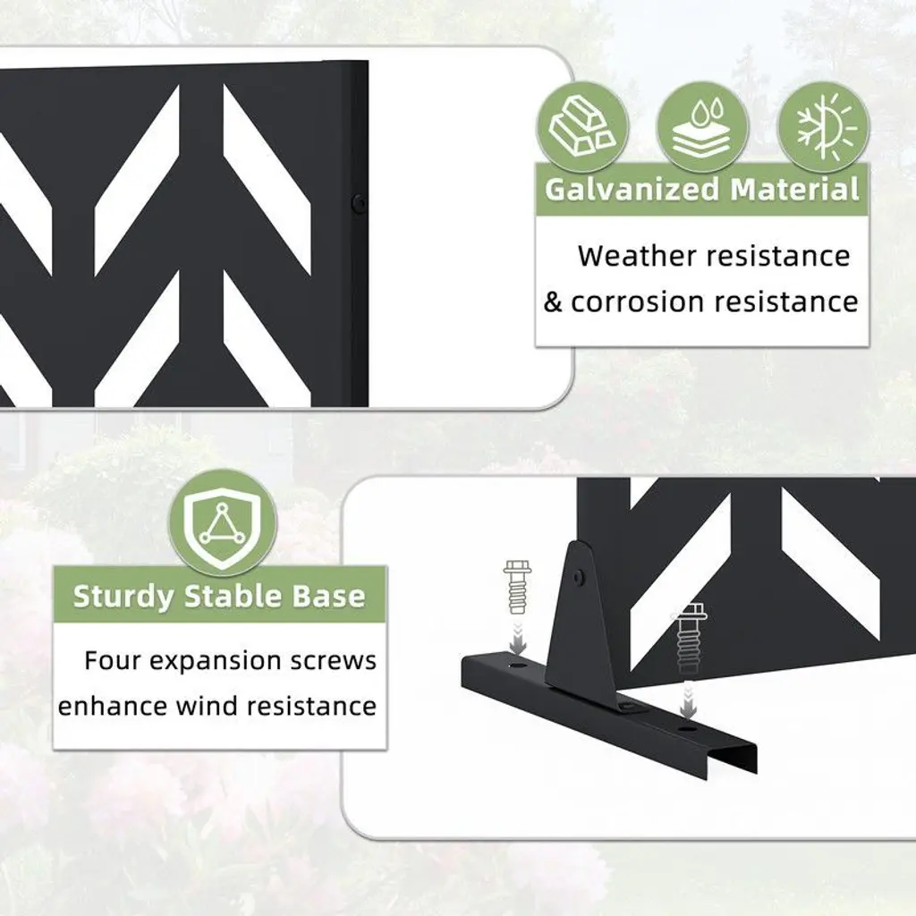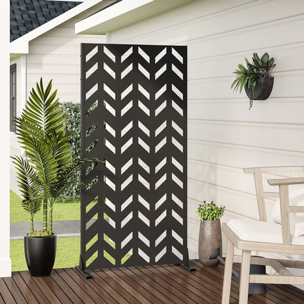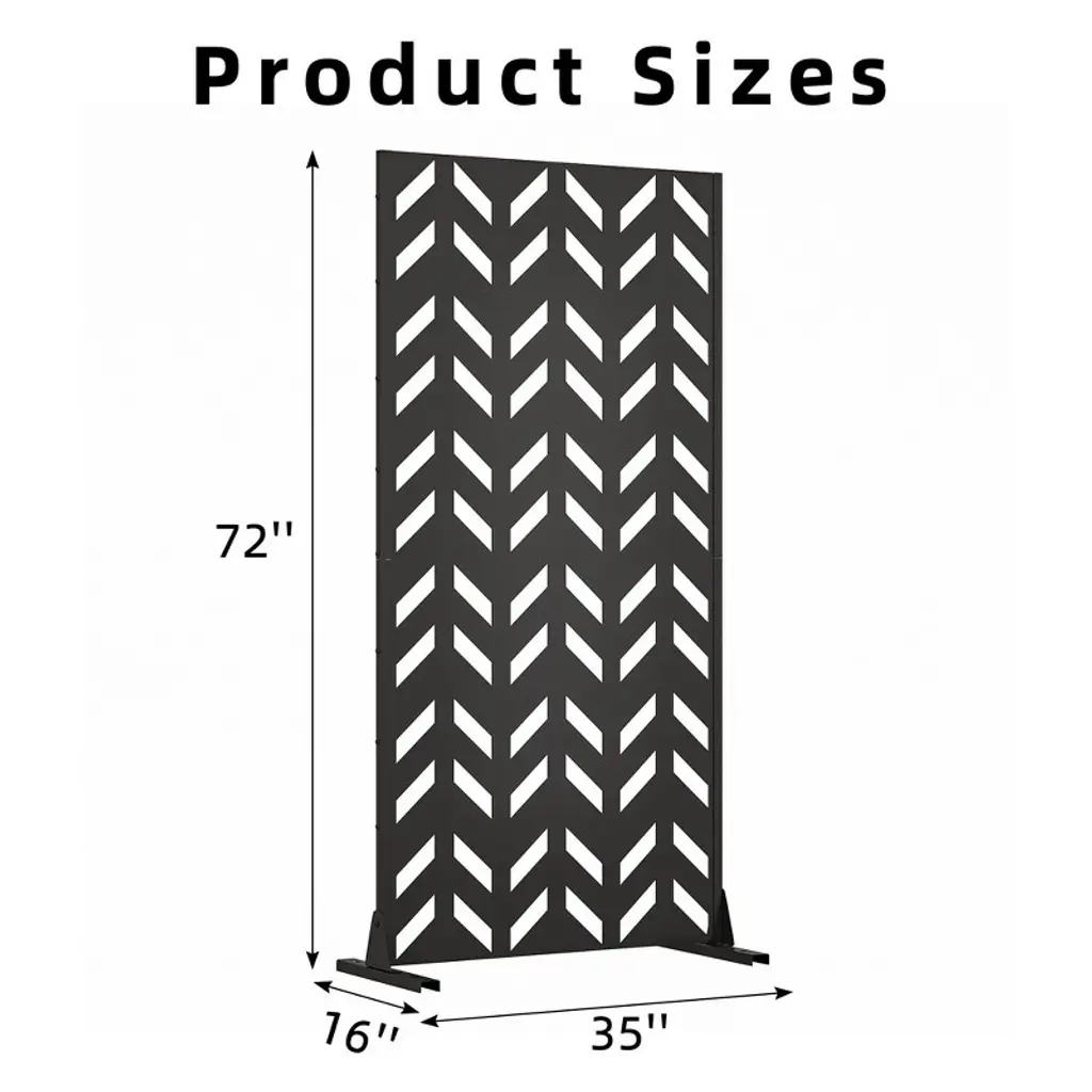 Transform your patio, balcony, or garden into a private oasis with our Freestanding Metal Privacy Screen. Crafted from rust-resistant powder-coated steel, this screen combines durability with modern aesthetics, featuring a decorative geometric pattern that blocks unwanted views while enhancing your outdoor decor. Its sturdy construction withstands rain, UV rays, and snow, ensuring year-round protection without fading or corrosion.