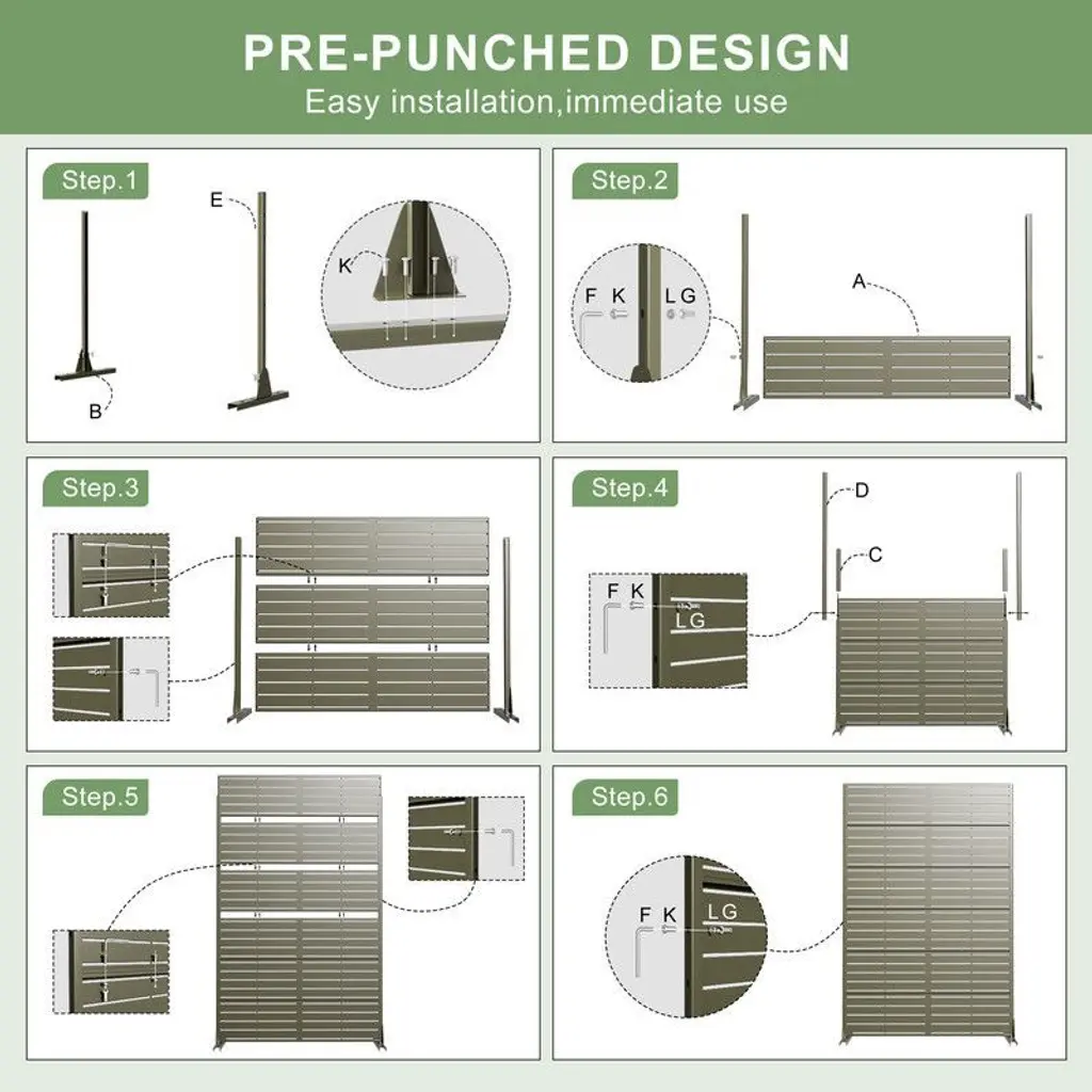 This exceptional privacy fence screen is a versatile choice that not only establishes a secluded space but also shields against intense sunlight. These panels, featuring a distinctive laser-cut pattern, seamlessly mount on walls, adding a decorative touch to your surroundings. Compact yet effective, these privacy screens are perfect for dividing spaces and enhancing the overall layout of any area.