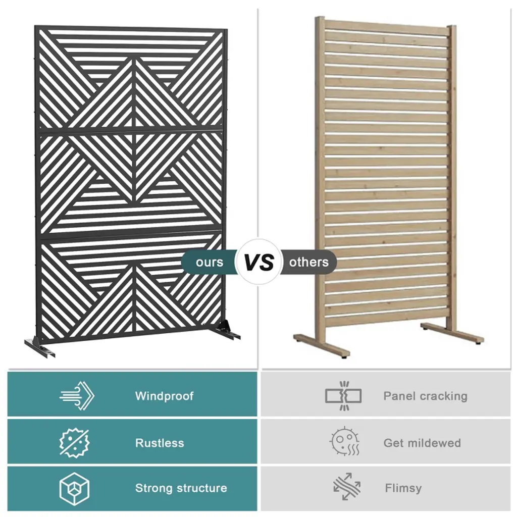 This exceptional privacy fence screen is a versatile choice that not only establishes a secluded space but also shields against intense sunlight. These panels, featuring a distinctive laser-cut pattern, seamlessly mount on walls, adding a decorative touch to your surroundings. Compact yet effective, these privacy screens are perfect for dividing spaces and enhancing the overall layout of any area.