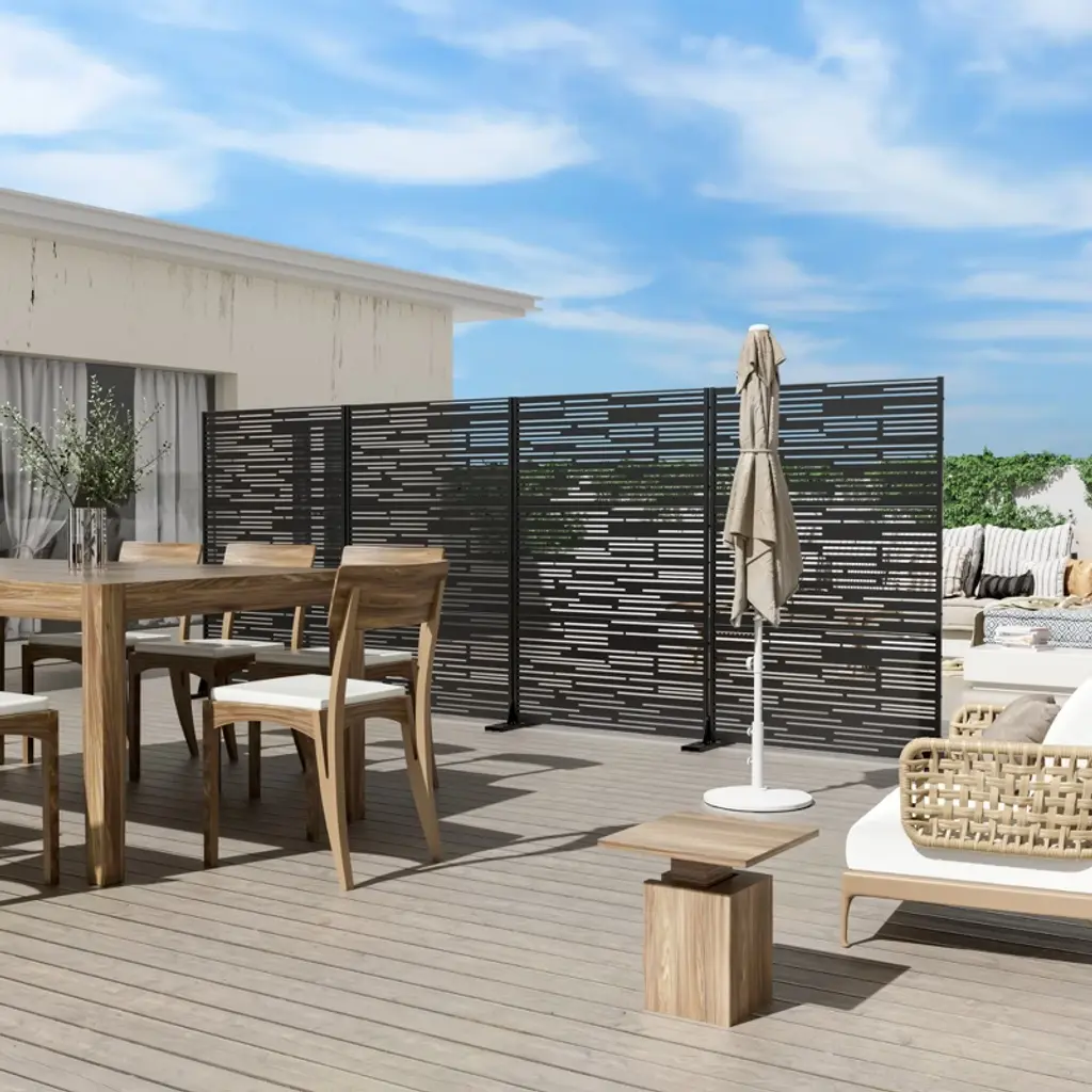 This exceptional privacy fence screen is a versatile choice that not only establishes a secluded space but also shields against intense sunlight. These panels, featuring a distinctive laser-cut pattern, seamlessly mount on walls, adding a decorative touch to your surroundings. Compact yet effective, these privacy screens are perfect for dividing spaces and enhancing the overall layout of any area.