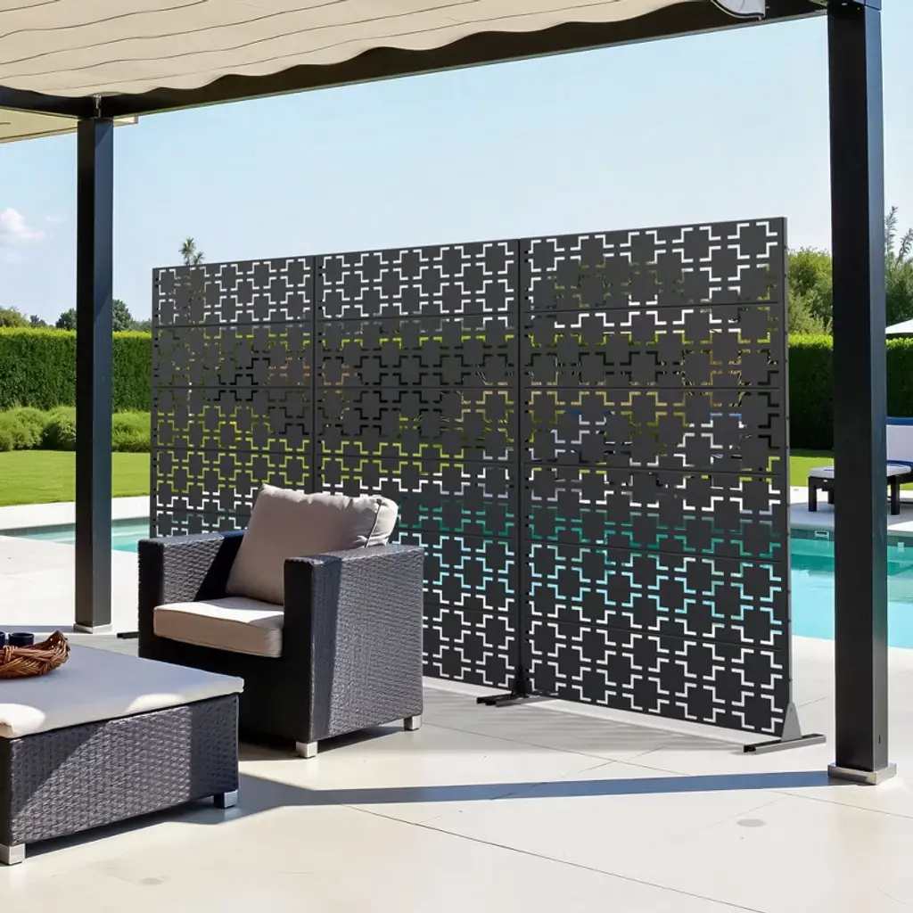 This exceptional privacy fence screen is a versatile choice that not only establishes a secluded space but also shields against intense sunlight. These panels, featuring a distinctive laser-cut pattern, seamlessly mount on walls, adding a decorative touch to your surroundings. Compact yet effective, these privacy screens are perfect for dividing spaces and enhancing the overall layout of any area.