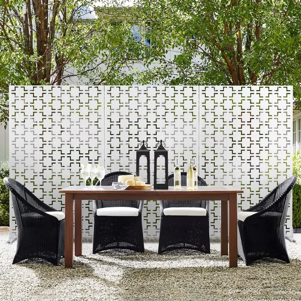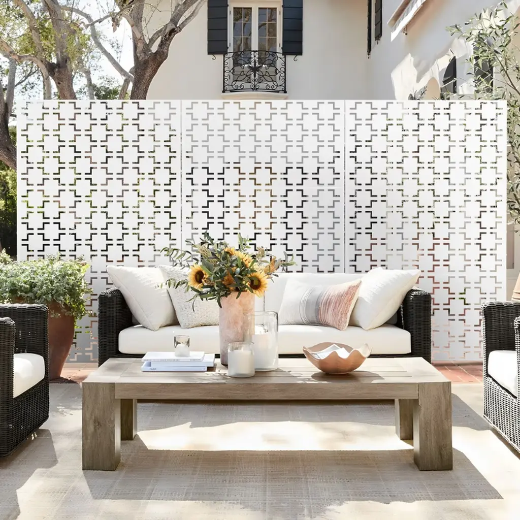 This exceptional privacy fence screen is a versatile choice that not only establishes a secluded space but also shields against intense sunlight. These panels, featuring a distinctive laser-cut pattern, seamlessly mount on walls, adding a decorative touch to your surroundings. Compact yet effective, these privacy screens are perfect for dividing spaces and enhancing the overall layout of any area.