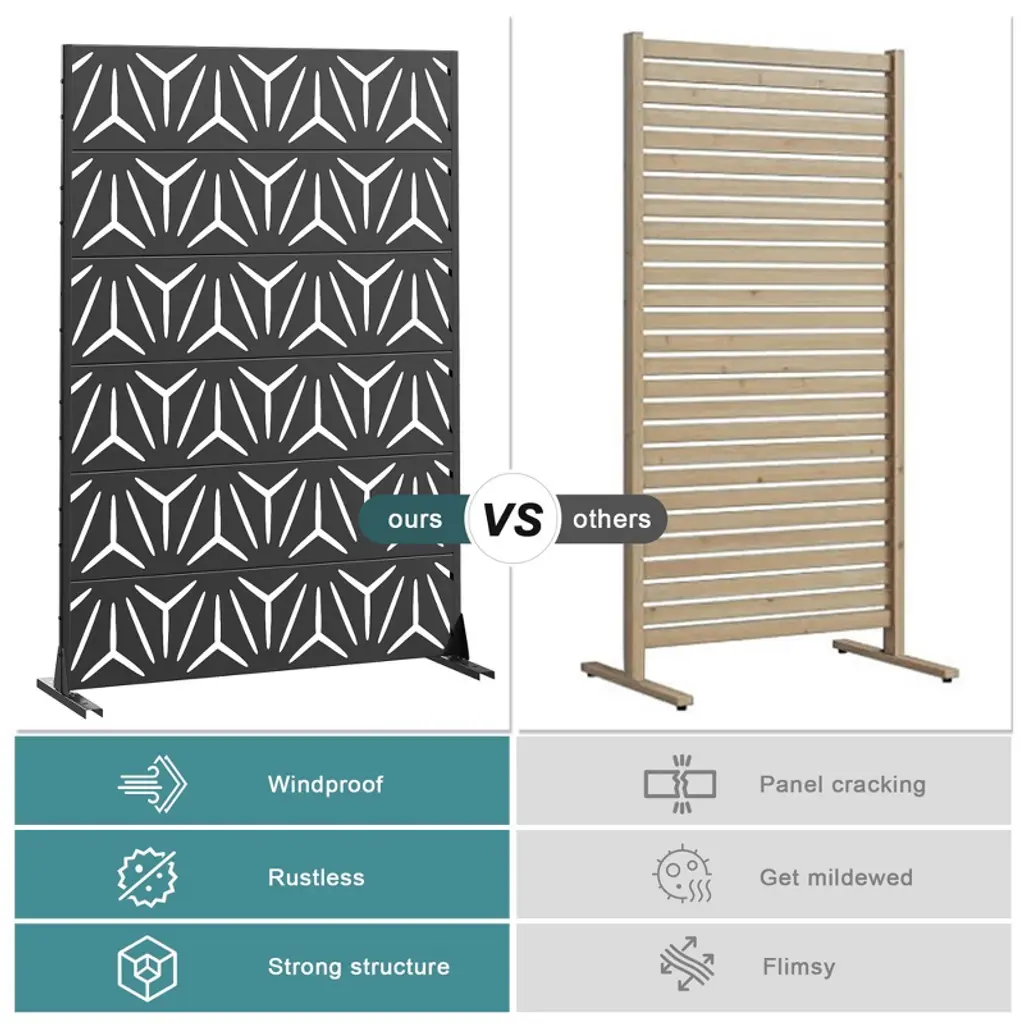 This exceptional privacy fence screen is a versatile choice that not only establishes a secluded space but also shields against intense sunlight. These panels, featuring a distinctive laser-cut pattern, seamlessly mount on walls, adding a decorative touch to your surroundings. Compact yet effective, these privacy screens are perfect for dividing spaces and enhancing the overall layout of any area.