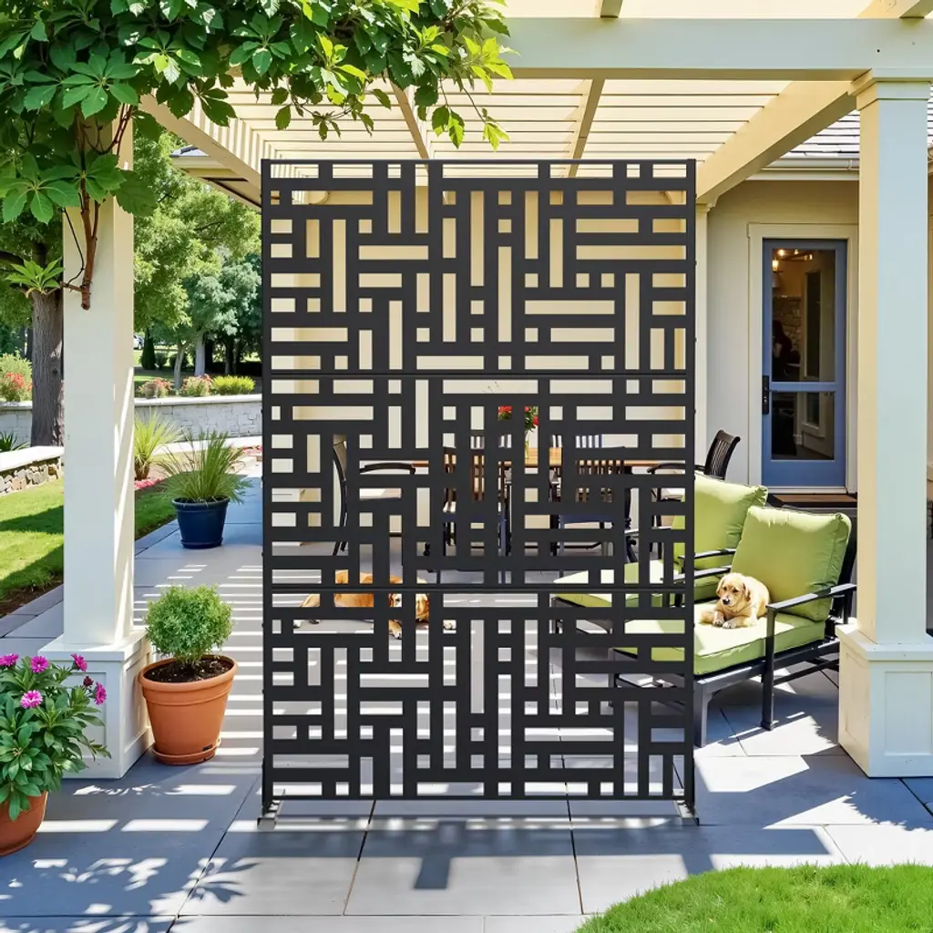Pexfix 72 In. X 47 In. Outdoor Metal Privacy Screen Garden Fence In Streets Pattern In Black