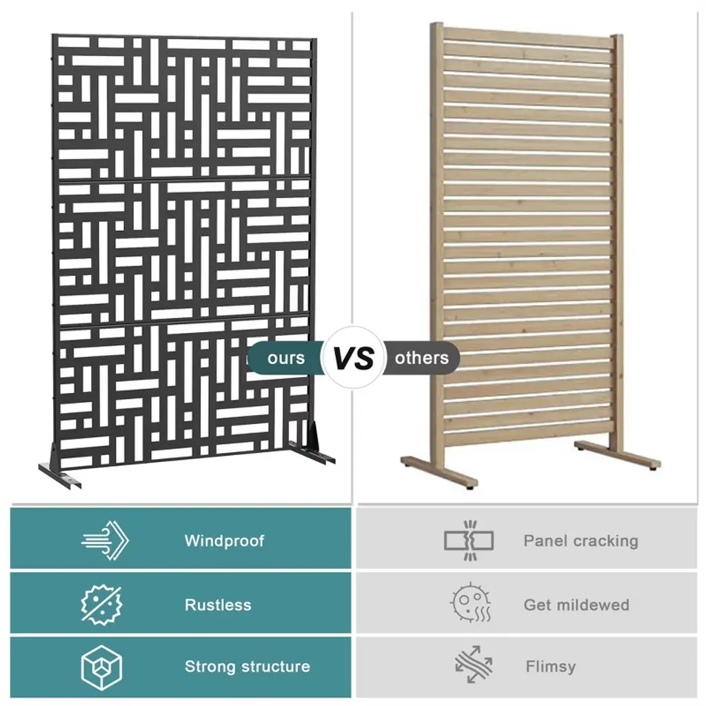 This premium privacy fence screen is a versatile selection that not only carves out a private oasis but also shields against strong sunlight. Each panel boasts a unique laser-cut design and can be effortlessly mounted on walls, infusing your environment with a touch of elegance. Their compact size and effectiveness make these privacy screens excellent for partitioning spaces and enhancing the layout of any area.