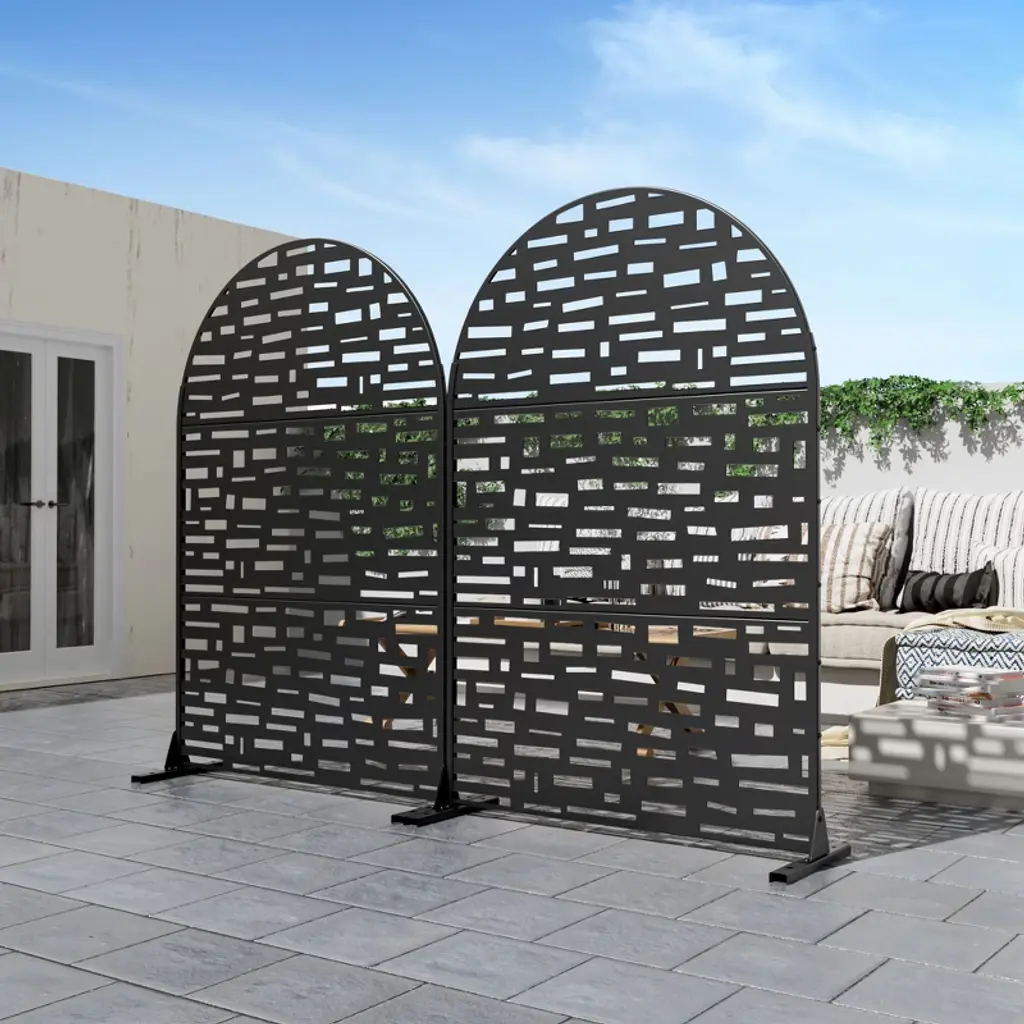 Pexfix 72 In. X 47 In. Outdoor Privacy Arch Screen Galvanized Steel Panel Divider In Black