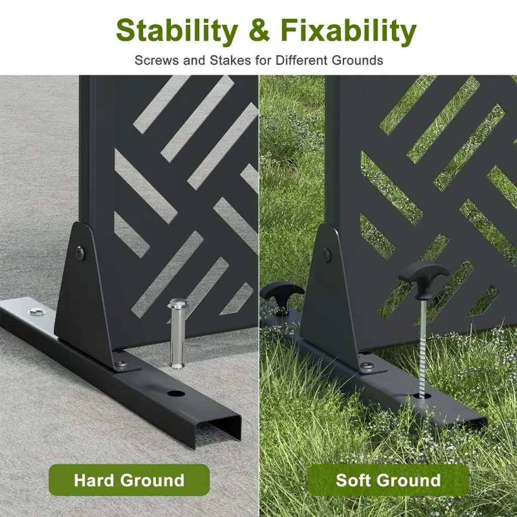 Crafted from premium galvanized steel, this large screen offers the fun of DIY with exceptional stability and fixability for easy installation. Designed for immediate use on various soft grounds, its durable material ensures longevity, making it a versatile and stylish solution for partitioning or adding privacy to any space.