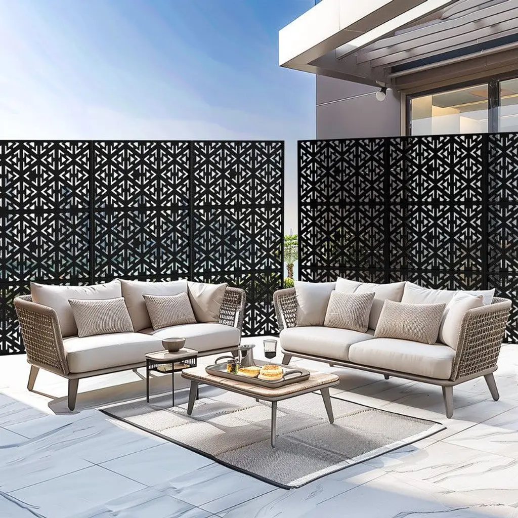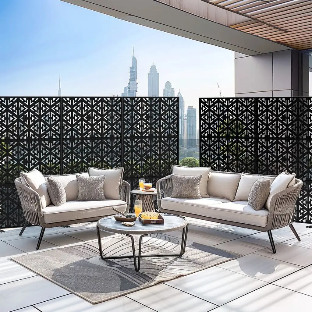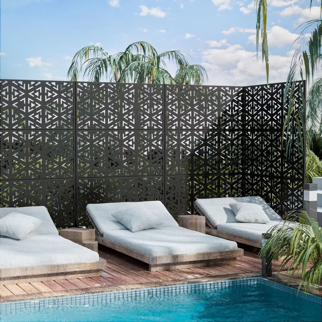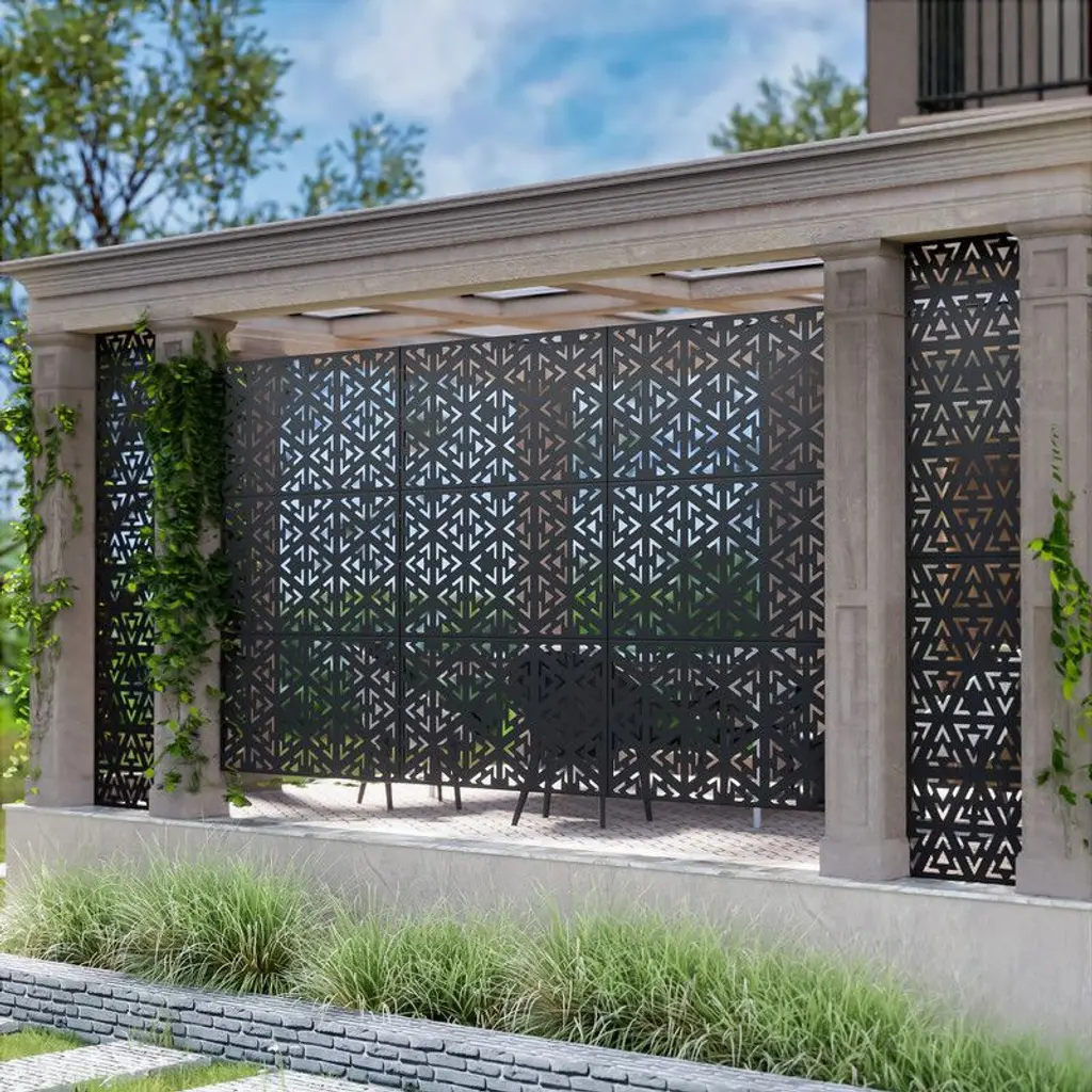 Transform your patio, balcony, or garden into a private oasis with our Freestanding Metal Privacy Screen. Crafted from rust-resistant powder-coated steel, this screen combines durability with modern aesthetics, featuring a decorative geometric pattern that blocks unwanted views while enhancing your outdoor decor. Its sturdy construction withstands rain, UV rays, and snow, ensuring year-round protection without fading or corrosion.