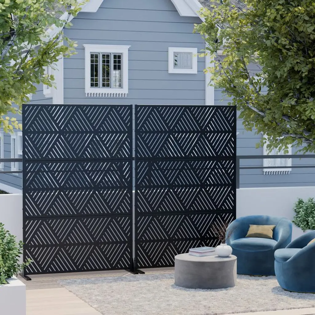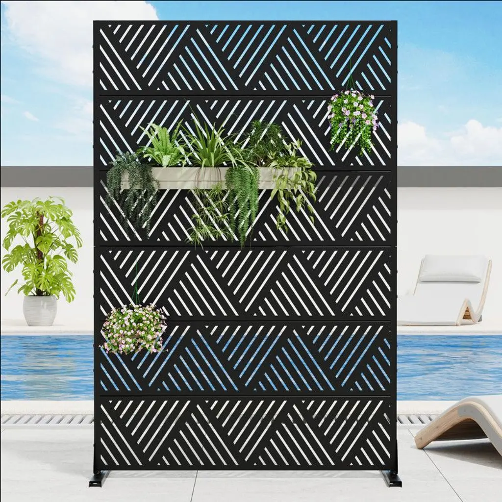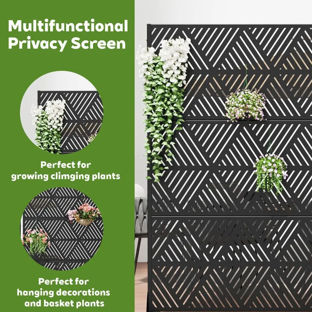 Transform your patio, balcony, or garden into a private oasis with our Freestanding Metal Privacy Screen. Crafted from rust-resistant powder-coated steel, this screen combines durability with modern aesthetics, featuring a decorative geometric pattern that blocks unwanted views while enhancing your outdoor decor. Its sturdy construction withstands rain, UV rays, and snow, ensuring year-round protection without fading or corrosion.