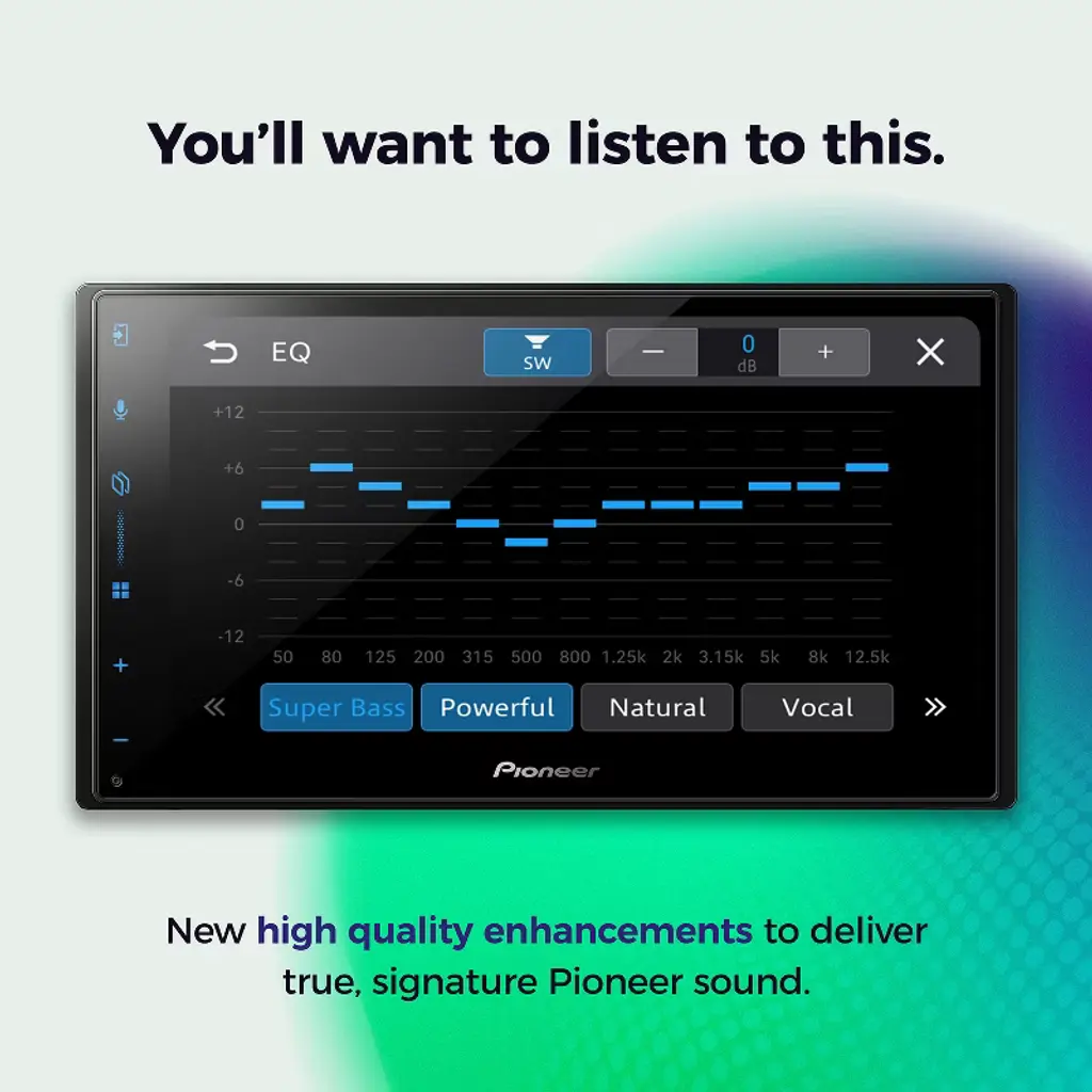 The Pioneer® DMH-W3000NEX is a digital media receiver that features a 6.8-in. capacitive touch screen, wireless Apple Carplay®/Android Auto™. It sports an L-shape chassis which allows for more room in the dash for installation. 1-Touch Button Navigation allows you to easily jump in and out of Carplay®/Android Auto™. This Pioneer® head unit also has Hi-Volt (4-volt) preamp output and is SiriusXM®-ready. It is even Alexa® compatible via the Pioneer® Vozsis app!
