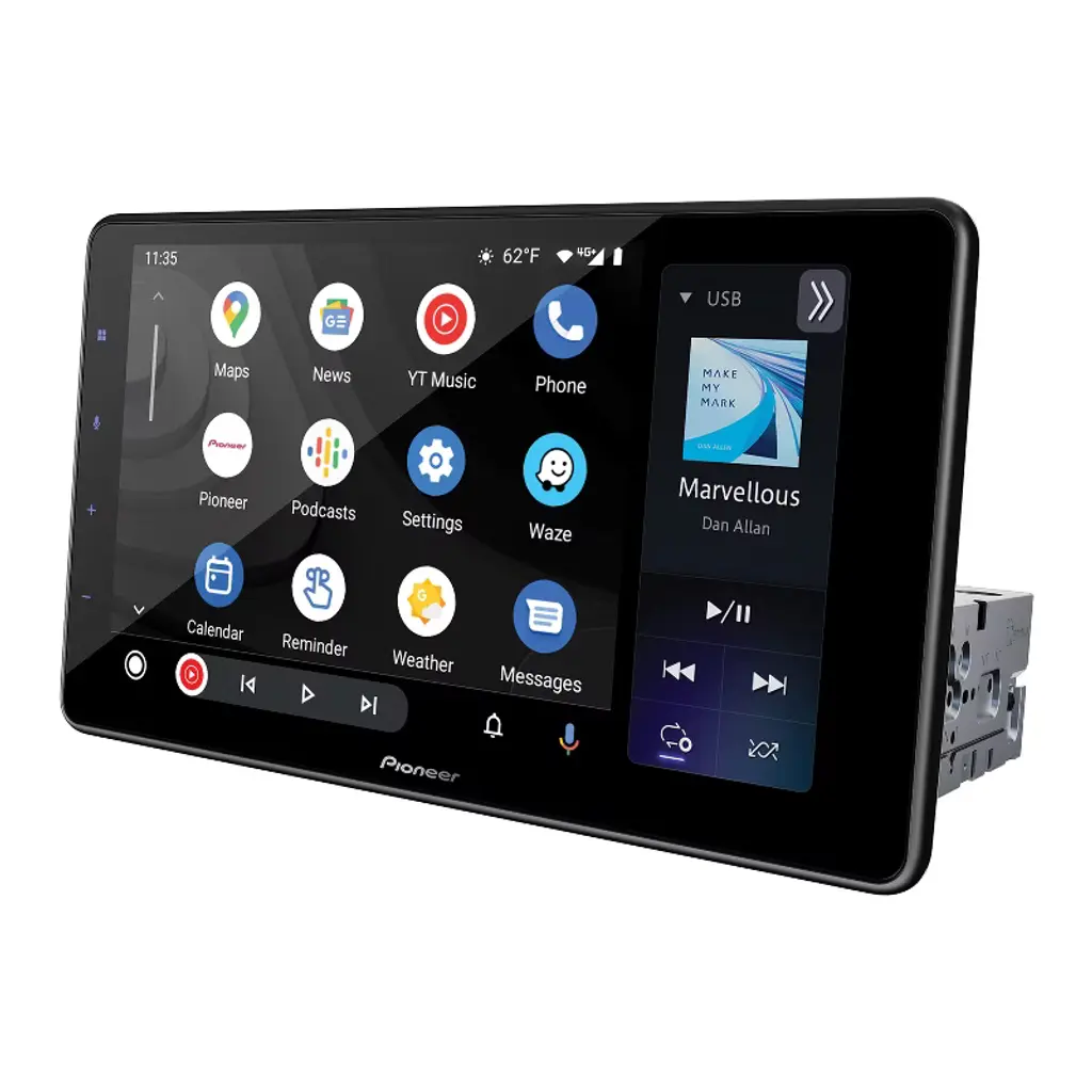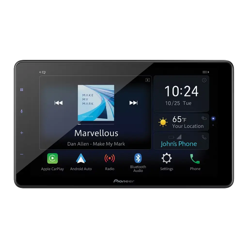 The Pioneer DMH-WT3800NEX 9-in. display is designed especially for today’s smartphone-driven lifestyle. This car stereo receiver highlights a capacitive floating touch screen display attached to a single-DIN chassis, allowing installation flexibility to ensure the best fit and usability for your vehicle’s dash. Access Apple CarPlay or Android Auto via a wireless or wired connection and take advantage of split screen mode to give you access to more on-screen information. With Light and Dark mode, it’s easier to see the screen when sunlight is being reflected in the car. Other features include built-in Bluetooth, 2 camera inputs, and an external GPS antenna plus is SiriusXM ready.