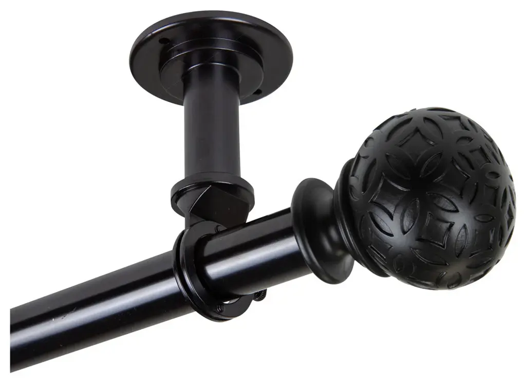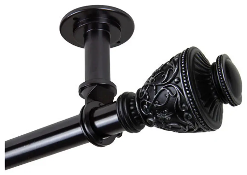 Includes: 1" rod, ceiling mounting brackets, and finialsProjection: 3.625"Finials measure: 3" x 2.5" x 2.5"