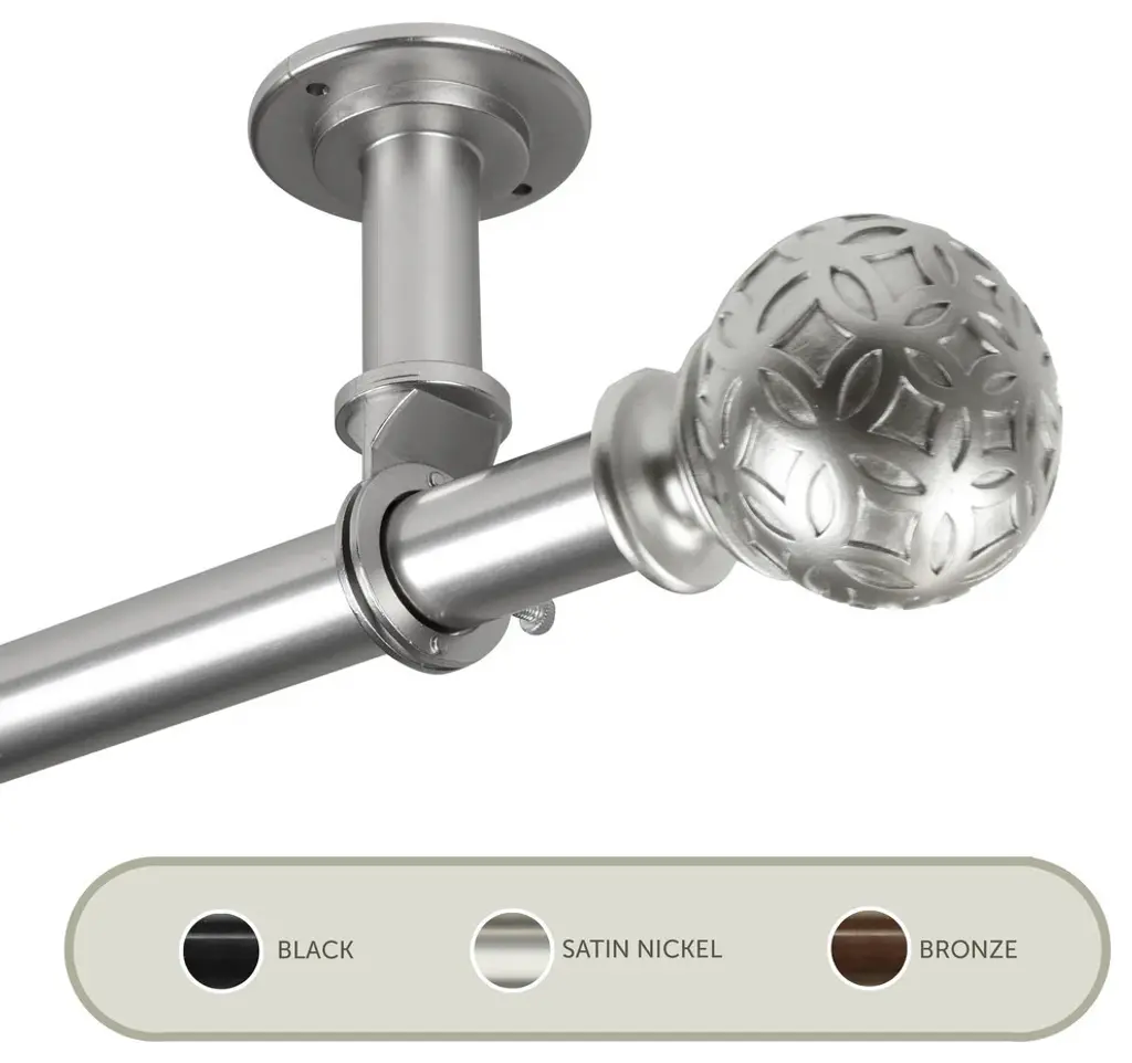 Includes: 1" rod, ceiling mounting brackets, and finialsProjection: 3.625"Finials measure: 3" x 2.5" x 2.5"