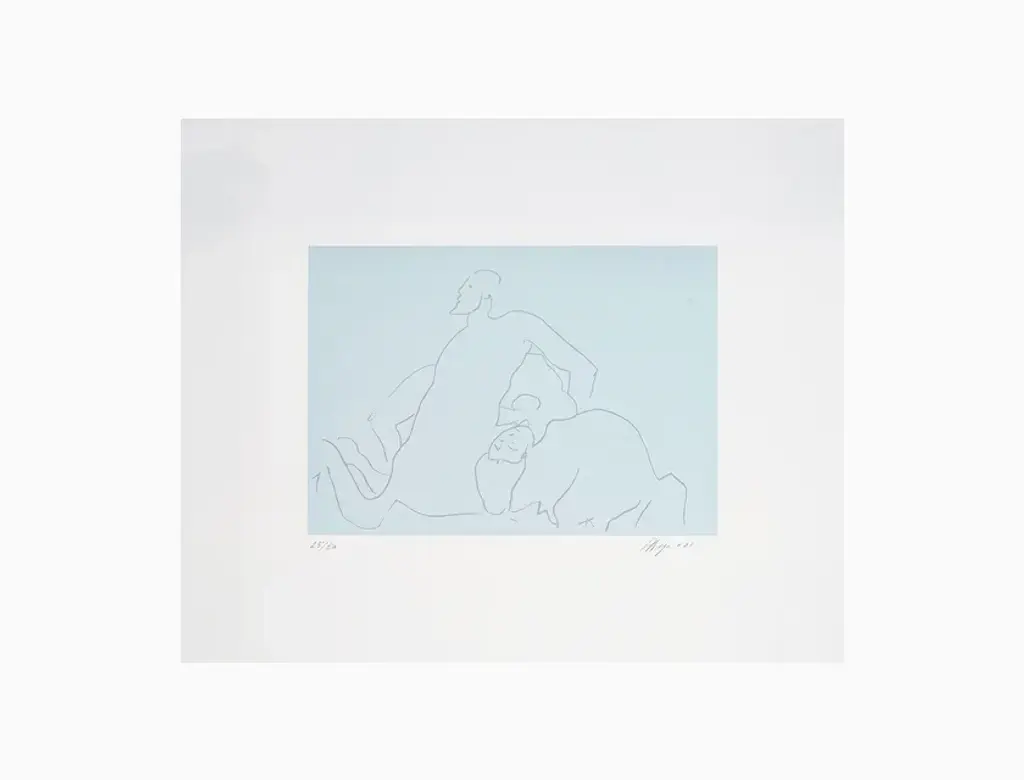 Rapto (The Abduction of Hippodamia) is a silkscreen. The subject from the Greek mythology describes the kidnapping of the bride Hippodamia during her wedding by the centaur Eurytus, resulting in a battle between humans and centaurs.Álvaro Siza started drawing at the age of six. With a great variety of drawings on his portfolio, many of them are inspired by mythology and historic scenes. Within this context, Álvaro Siza selected for MOR the three drawings he likes the most: Desenho, Cavalo de Troia and Rapto.“The drawings are what came to my mind in this very moment. I like mythology and expressing the stories in images. I have made a lot of mythological drawing in my life” Álvaro Siza.METHOD & MATERIALSSilkscreen technique (also known as screen printing) on Fabriano paper | 300gr.The original drawings were made using a ballpoint pen (Cavalo de Troia and Desenho) and a pencil (Rapto), all on white paper. However, for the screen prints, instead of having the drawings simply printed on a white background, Siza opted to add soft colours on each drawing, enriching the visual experience.LIMITED EDITIONEach edition has a series of 50 prints, numbered and signed by the artist. Each image is sold individually and unframed.