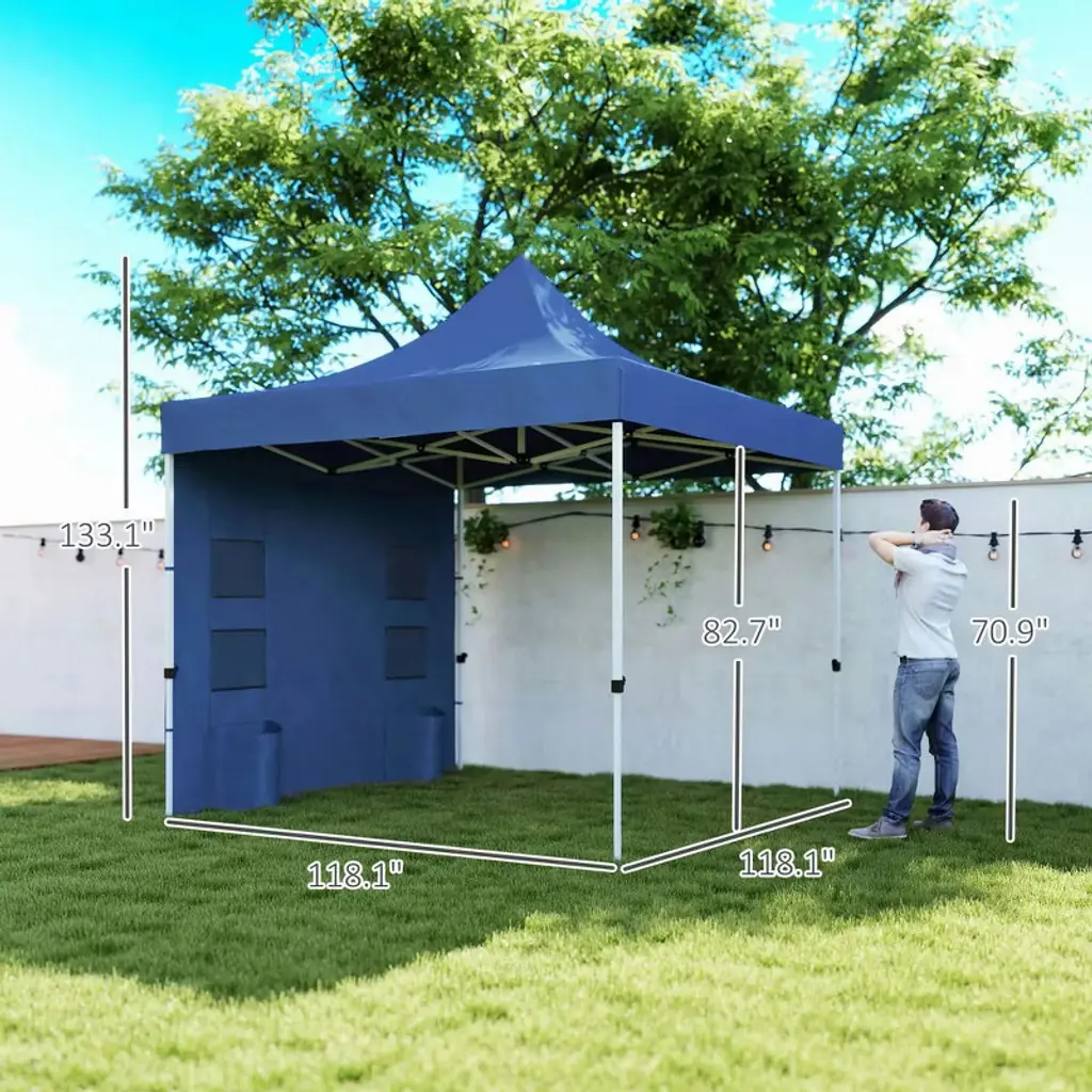 Resenkos Backyard Garden Canopy, Camping Canopy Screen Tent,10' X 10' Heavy Duty Pop Up Canopy Tent With Sidewall, Storage Pockets, Dark Blue