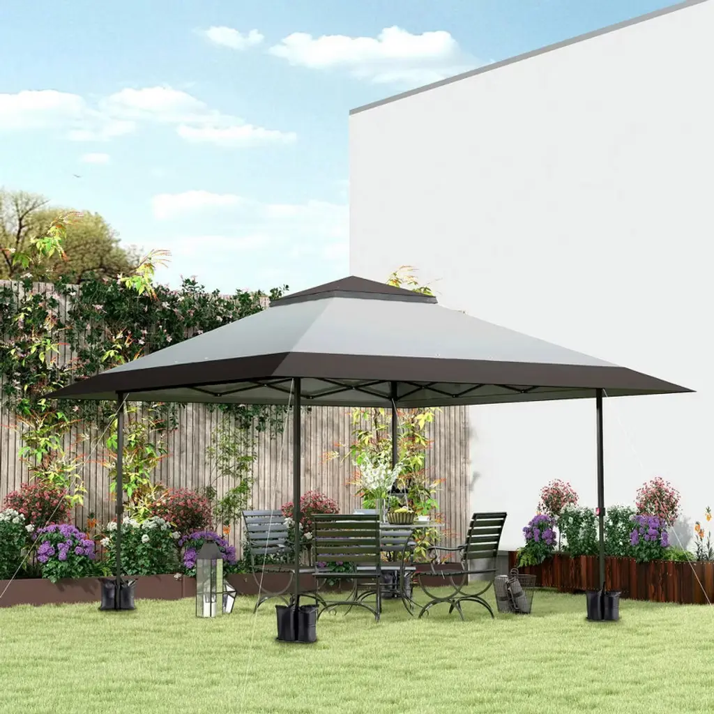 Resenkos Backyard Garden Canopy, Camping Canopy Screen Tent,13' X 13' Pop Up Canopy Tent With Wheeled Carry Bag And 4 Sand Bags, Gray
