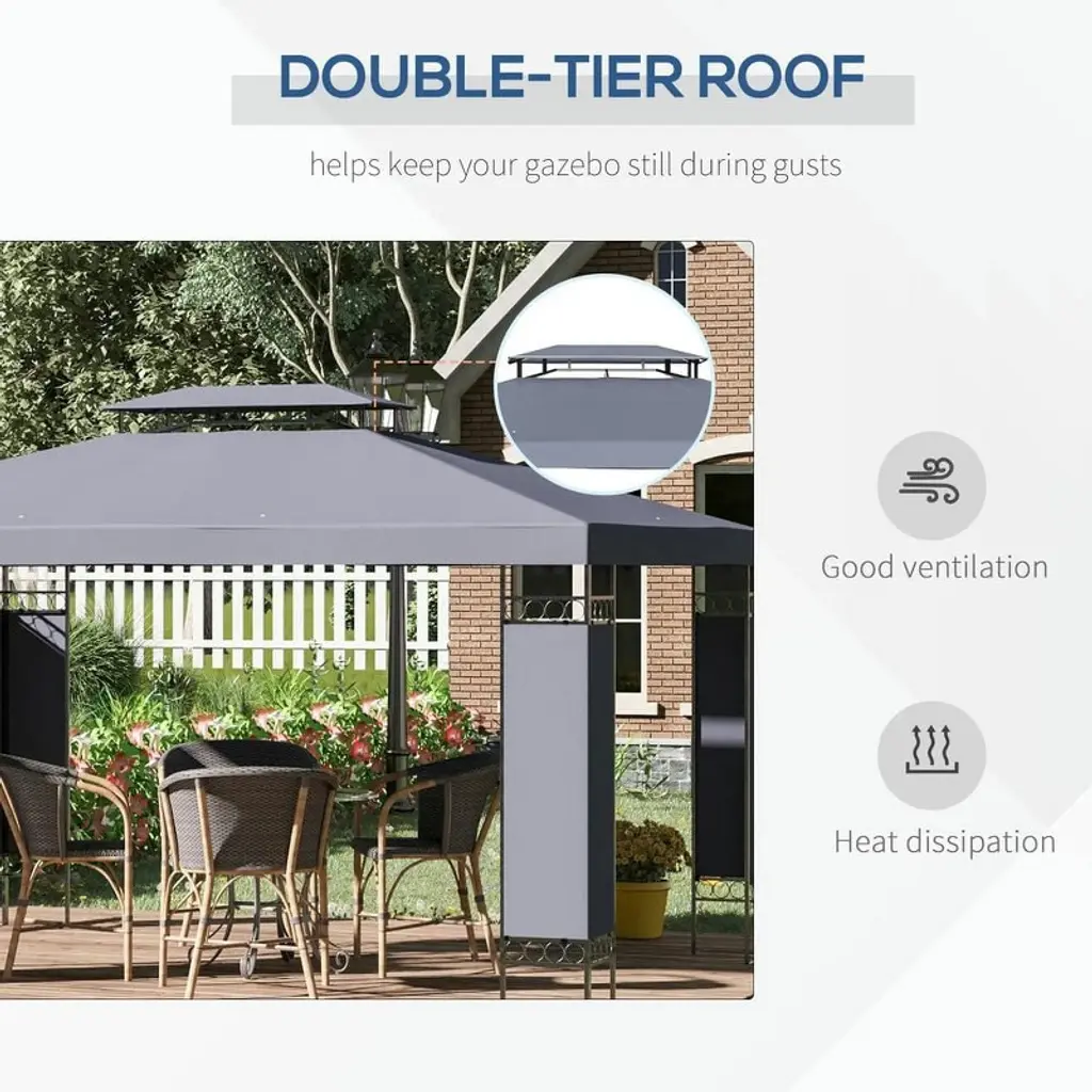 Resenkos Outdoor Garden Gazebo, Sunshade Gazebo Canopy,10' X 13' Double Roof Outdoor Gazebo Canopy Shelter With Screen Decorate Corner Frame, Gray