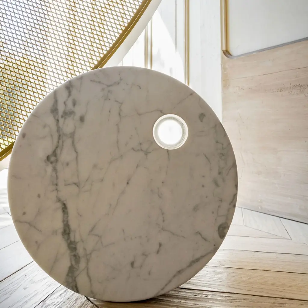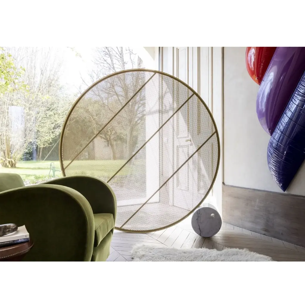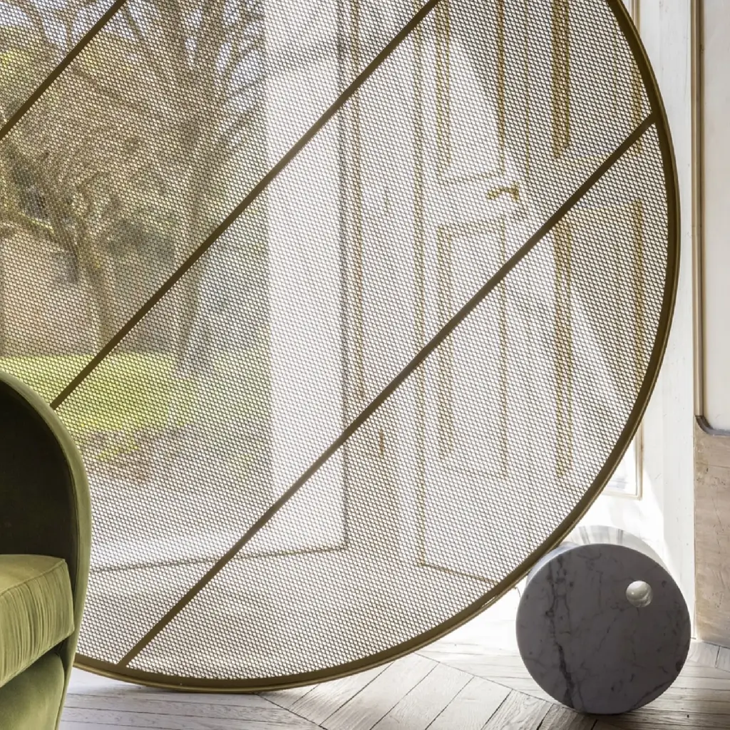 Indulge in luxury with Swing, the perfect combination of form and function. The elegant metal screen, available in stunning marble, black Marquina, or concrete bases, can rotate 90 degrees, effortlessly dividing and defining your space.