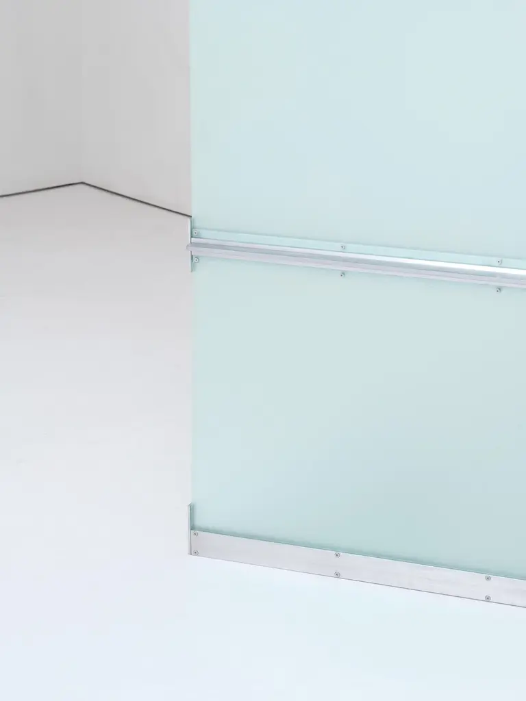 The room screen attaches to the column. The sandwich of panel colours are interchangeable to play with translucency and indirectly illuminate the room, possibilities can include a smoky effect inspired by common glass objects of 90s China. Through the movement of the individual, the possibility for rotation, and the ever changing light, the screen’s enigmatic material qualities break the dividing line down.