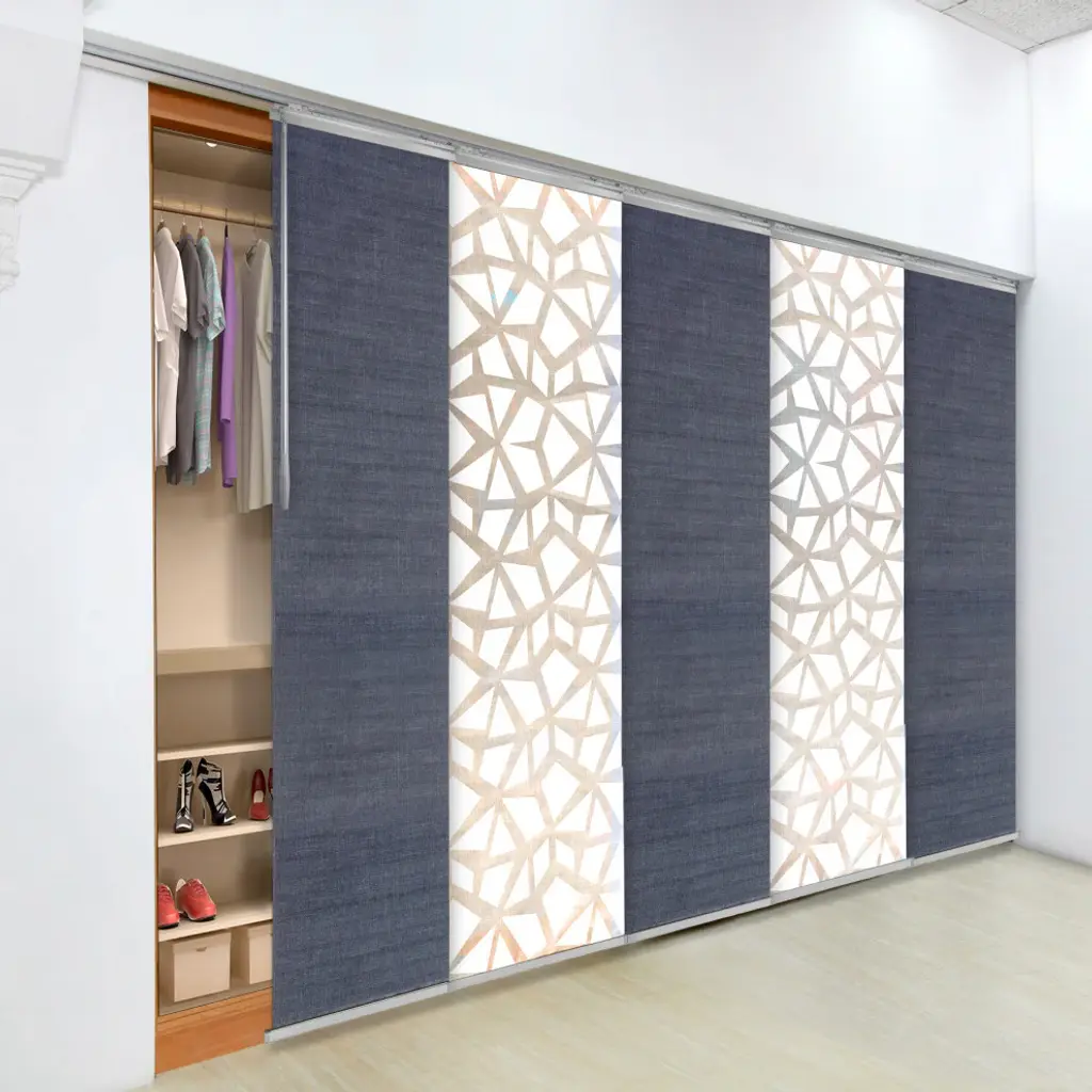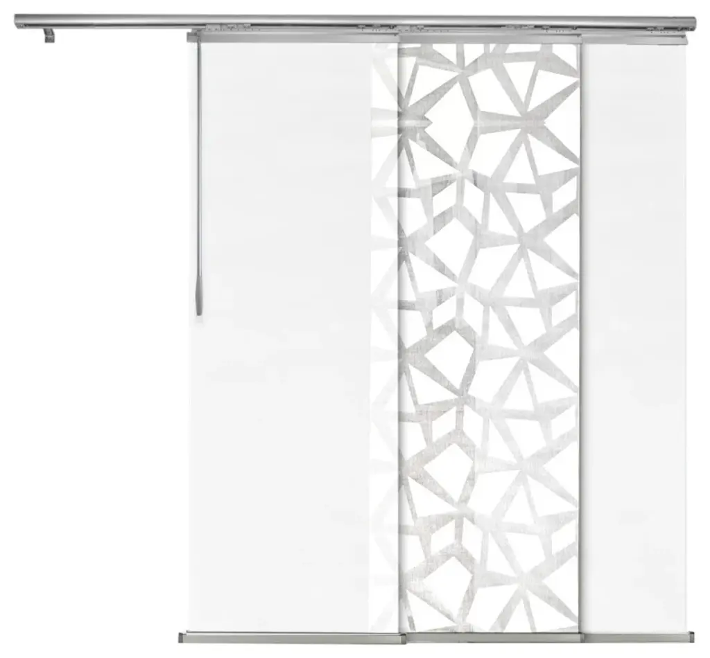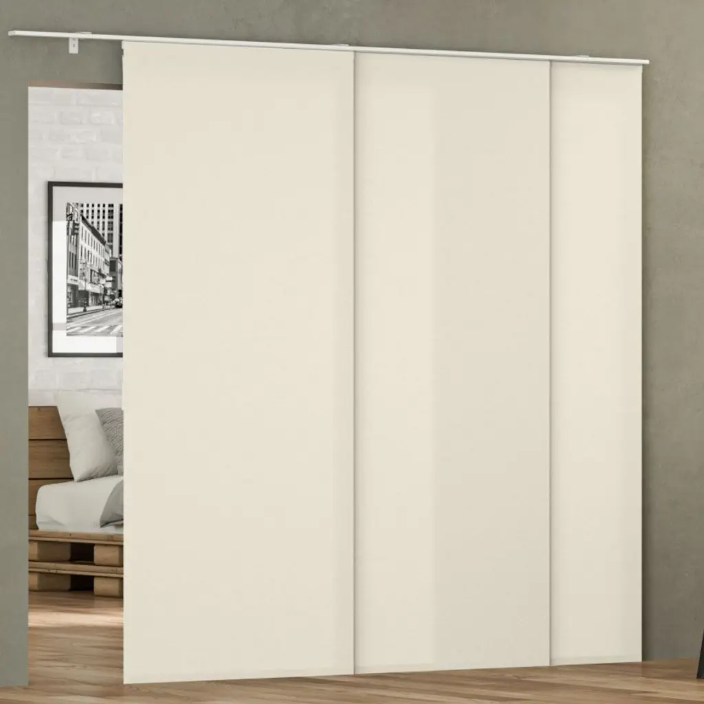 Central Design is pleased to announce the newly designed Panel Track, easily used as 2-way Vertical Blinds or Room Divider. Distinguished winner of the "2020 Good Design Award and 2021 MUSE Design Awards". - 3-Panel Baton Draw Track with the total width adjustable from 36-66". Individual Panel Size: 91.5" Height x 23.5" Wide. Overall Height including rail track is 94". The height of the Panel is adjustable by simply trimming the Panel and re-attaching the Liner and Panel Weight (Instructions provided). -Wall or Ceiling mountable for versatility in its set up. Clearance (wall to the the back of Panel Track): extendable from 1.25"-3.25". Projection (wall to the furthest point): extendable from 3"-4.25". -Single Rail Patented design; 1.25" thick for a very slick, thin, and compact design. No more bulky rail set ups. Made of steel for a durable and smooth operation of the Panels. Different from your standard panel track in that the sliders are designed in a more compact, overlapping fashion to reduce light bleed coming from in between the Panels. -Track Material: steel. Panel Material: Polyester. More Panel Track sizes available & sold separately; 3-panel, 4-panel, 5-panel, 6-panel
