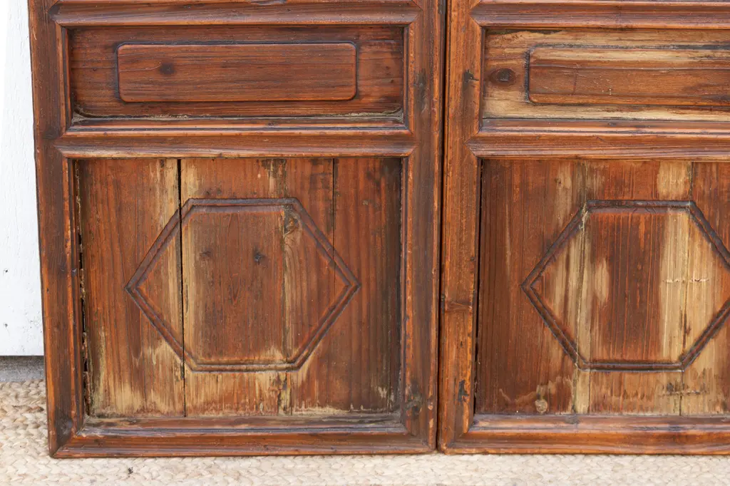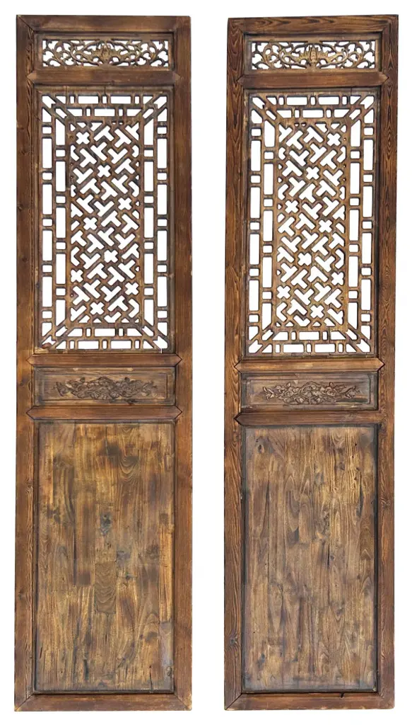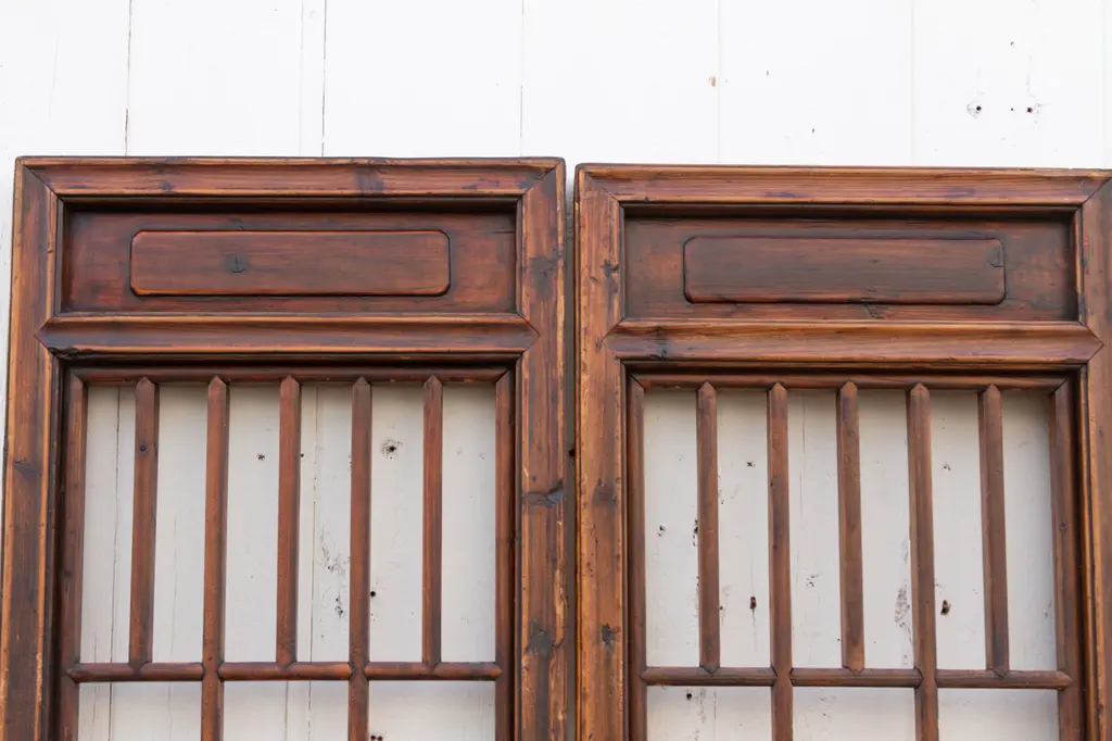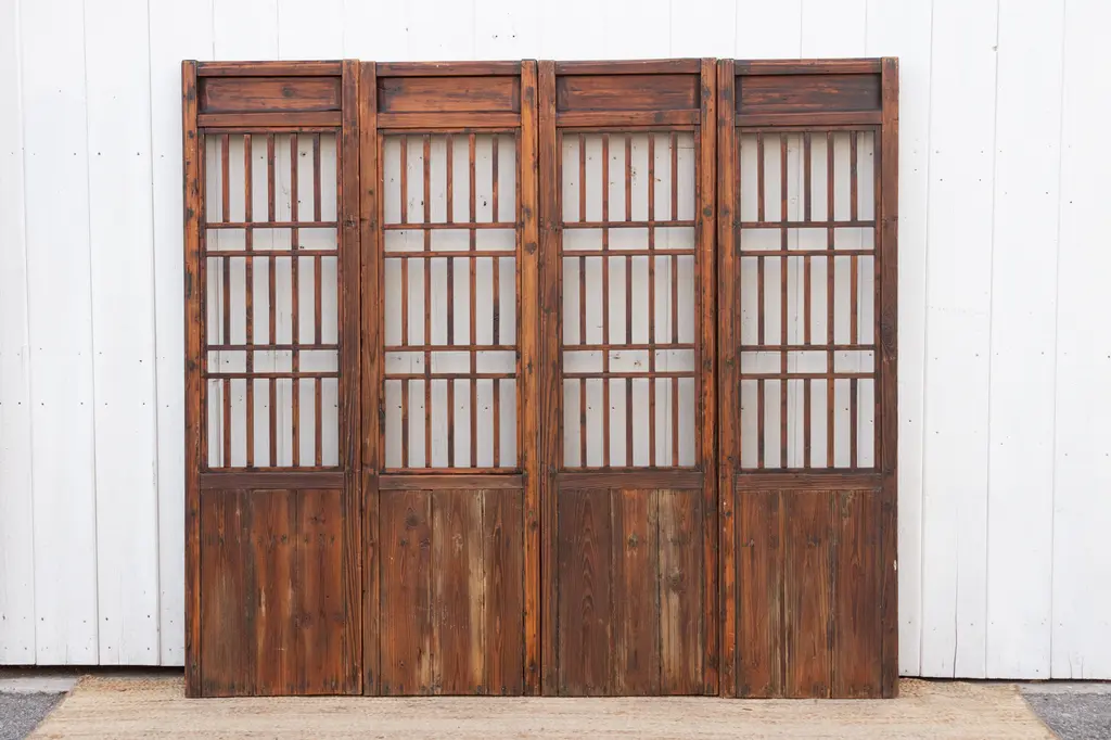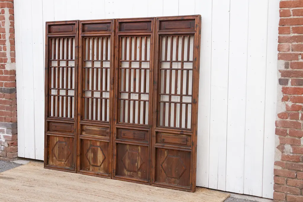 A farmhouse exquisite set of 4 Chinese screens, handcrafted in the spirit of the Ming Dynasty. Standing tall at 6 feet, they offer diverse functionality as a stunning room divider, captivating wall art, or even a majestic screen door for spacious rooms with high ceilings. Imagine light and air swirling through the open lattice panels, creating a mesmerizing play of light and shadow while maintaining privacy and showcasing magnificent views.