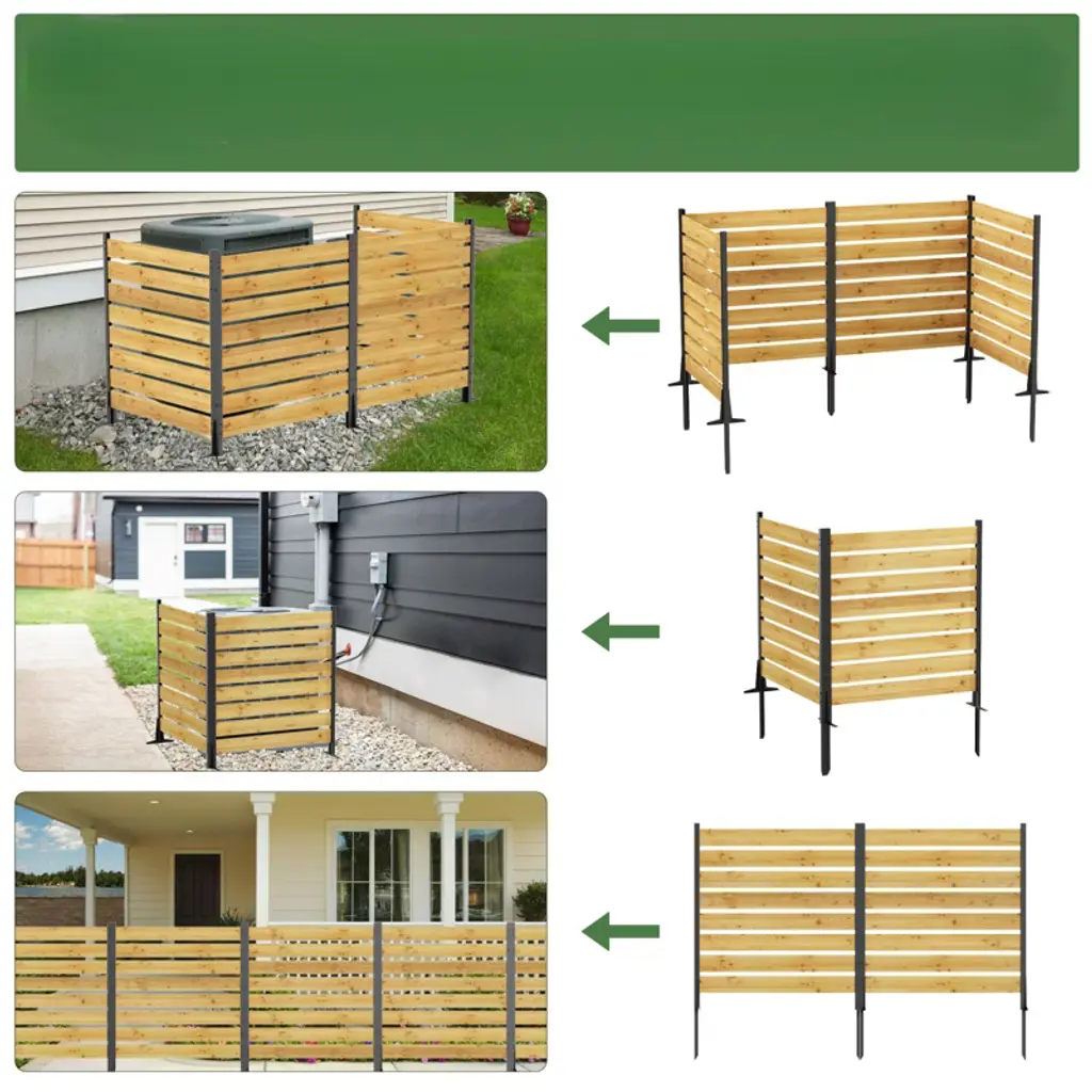 SEVOBAL premium cedar privacy screens combine natural beauty with modern functionality. The powder-coated aluminum frame provides rust-resistant support, while the cedar wood panels offer warmth and durability. Quick tool-free installation adapts to various ground surfaces. Perfect for concealing outdoor equipment or creating intimate garden spaces, the slatted design balances privacy with ventilation. Easy maintenance preserves the wood's natural elegance.