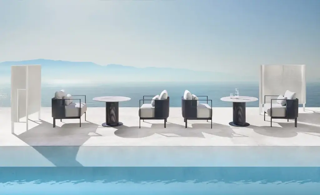 SOLANAS is the new GANDIABLASCO collection born from the aesthetic sensibility and passion for the outdoors of Argentinean architect and designer Daniel Germani. Its an homage to SOLANAS, a beach located in Uruguay, where Daniel Germani used to spend his summers. A paradise with never-ending sunsets and beaches that disappear into the horizon. He also pays homage to his father, a man who was always ready to open the doors of his home to friends and family. Just as talented a chef as a host, this engineer by training with an extraordinary aesthetic sensibility designed the outside space of his house in Solanas to accommodate his numerous guests and for the enjoyment of his three passions: nature, family and gastronomy..Made of thermo-lacquered welded aluminium profiles.Porcelain.Polyurethane foam rubber covered with water-repellent fabric. Removable fabric cover.Collections colour sample: white, agate grey, cement grey, bottle green, gold, sand, bronze, wine red, blue grey, grey blue, quartz grey, anthracite and black.
