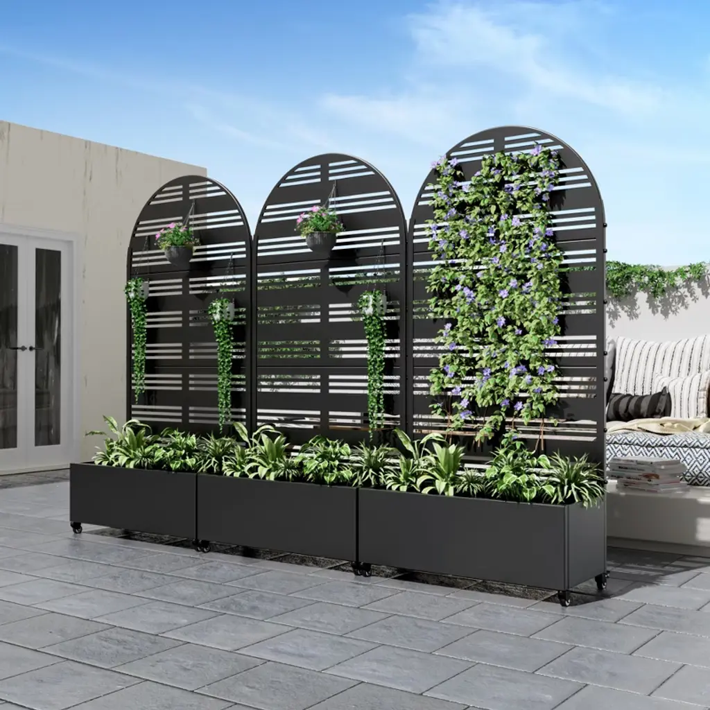 Introducing the Metal Planter Box with Trellis Raised Garden Bed with Arbor Privacy Screen with Wheels - the ultimate solution for creating a beautiful and functional outdoor or indoor space. This versatile garden bed combines the elegance of a trellis with the practicality of a raised bed. It also can be a perfect choice as a privacy screen when creating more beauty for your home.