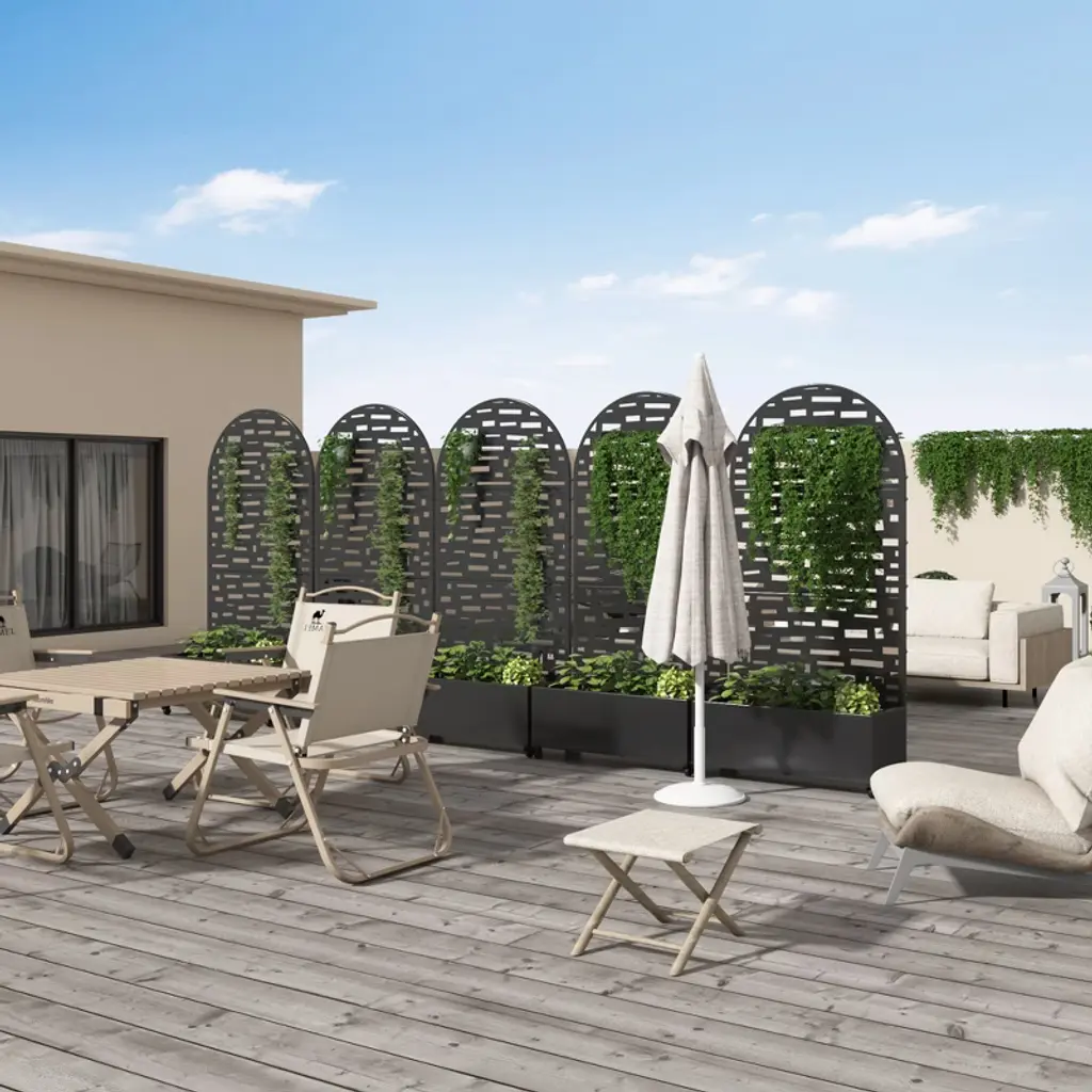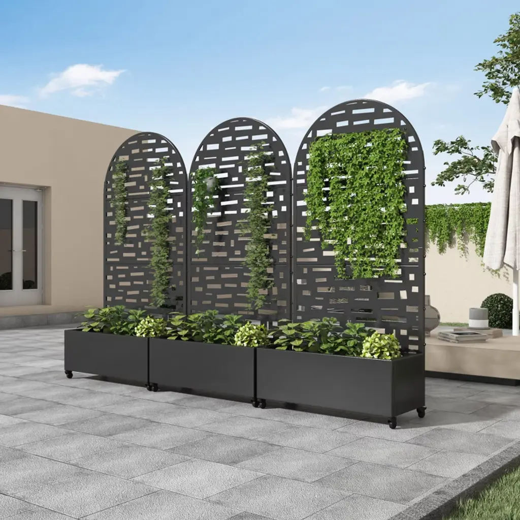 Introducing the Metal Planter Box with Trellis Raised Garden Bed with Arbor Privacy Screen with Wheels - the ultimate solution for creating a beautiful and functional outdoor or indoor space. This versatile garden bed combines the elegance of a trellis with the practicality of a raised bed. It also can be a perfect choice as a privacy screen when creating more beauty for your home.