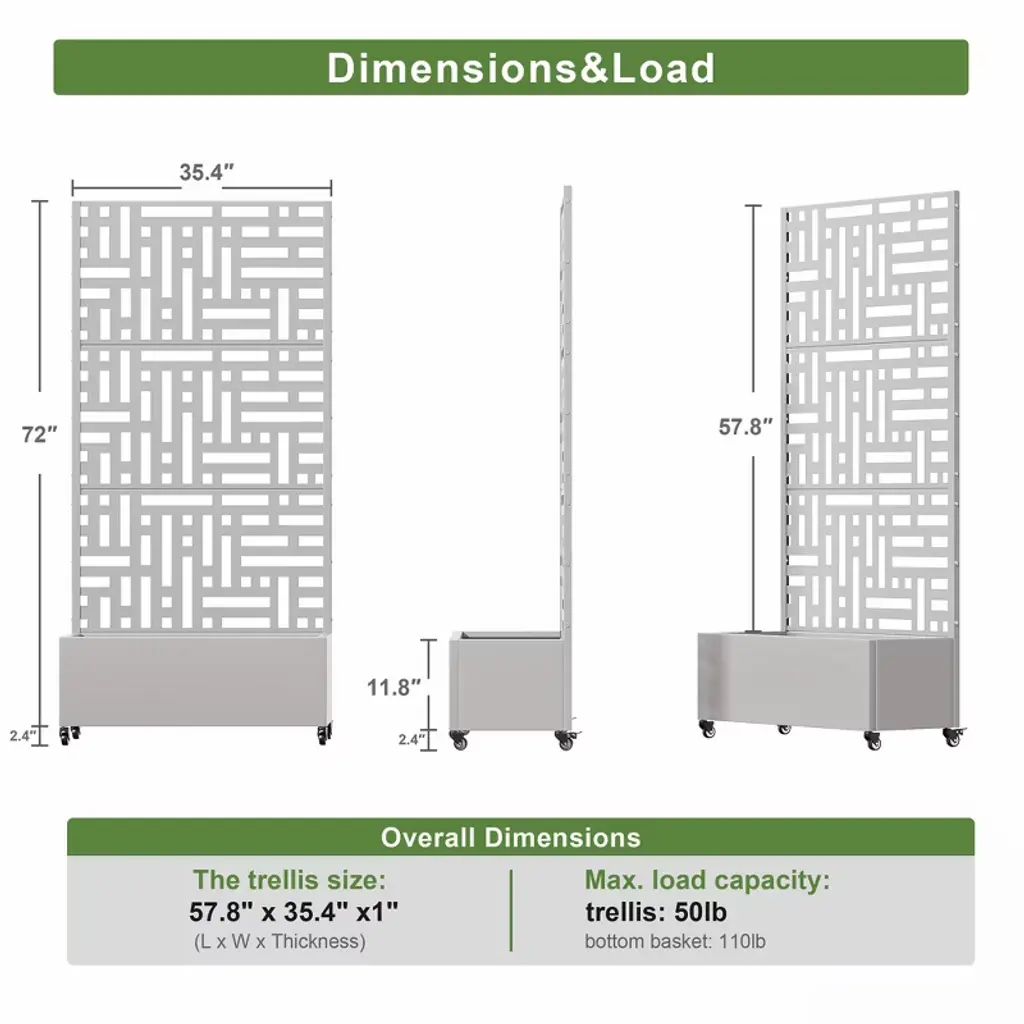 Introducing the Metal Planter Box with Trellis Raised Garden Bed with Arbor Privacy Screen with Wheels - the ultimate solution for creating a beautiful and functional outdoor or indoor space. This versatile garden bed combines the elegance of a trellis with the practicality of a raised bed. It also can be a perfect choice as a privacy screen when creating more beauty for your home.