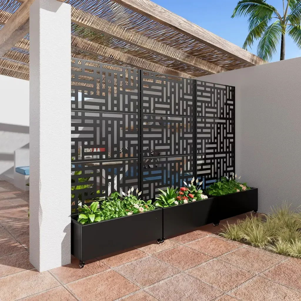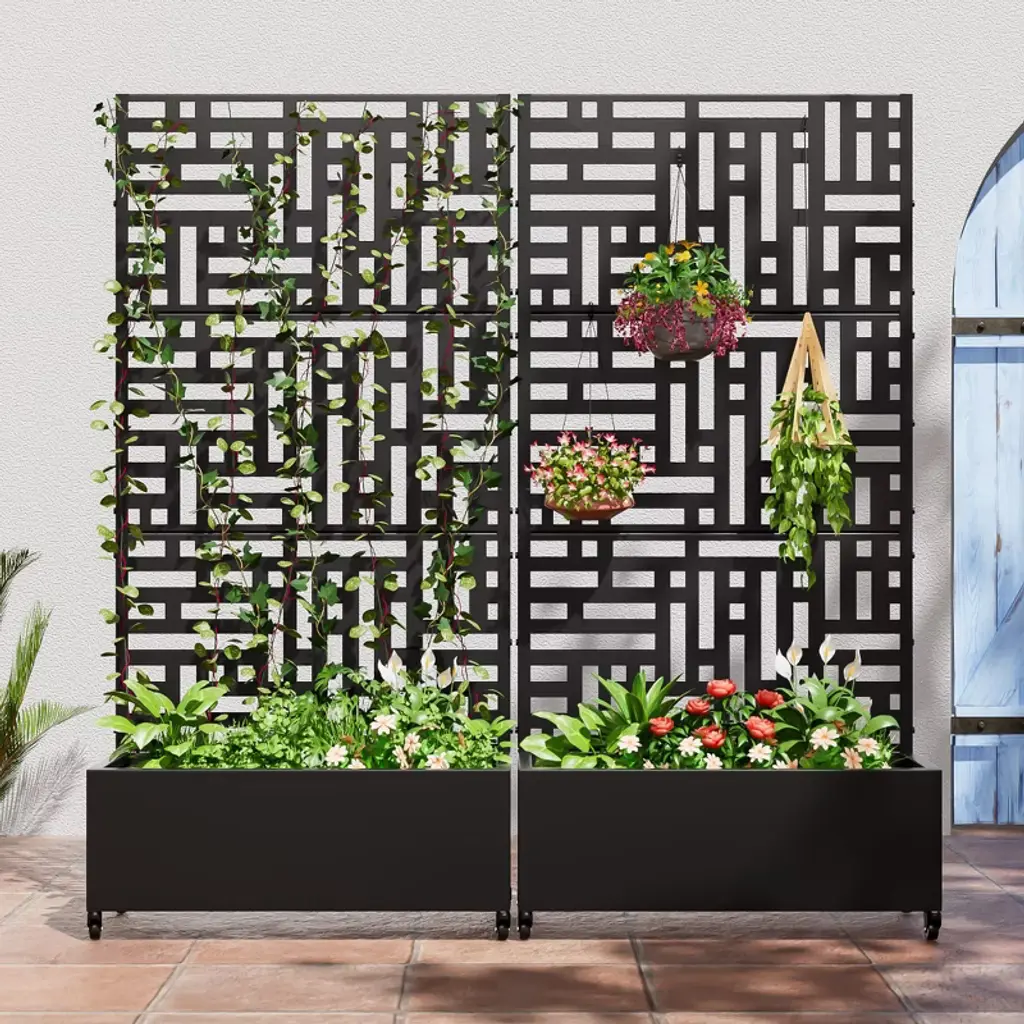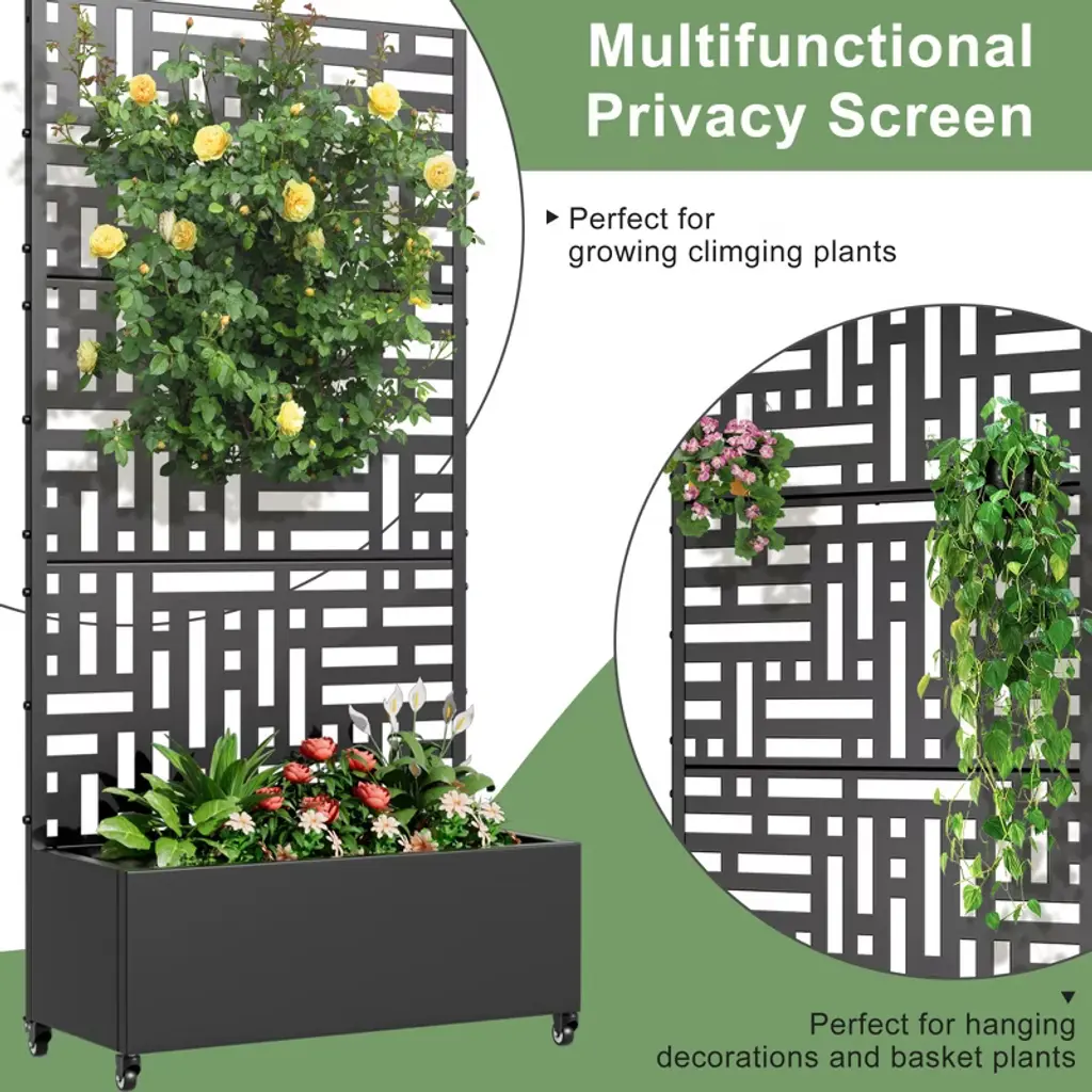 Introducing the Metal Planter Box with Trellis Raised Garden Bed with Arbor Privacy Screen with Wheels - the ultimate solution for creating a beautiful and functional outdoor or indoor space. This versatile garden bed combines the elegance of a trellis with the practicality of a raised bed. It also can be a perfect choice as a privacy screen when creating more beauty for your home.