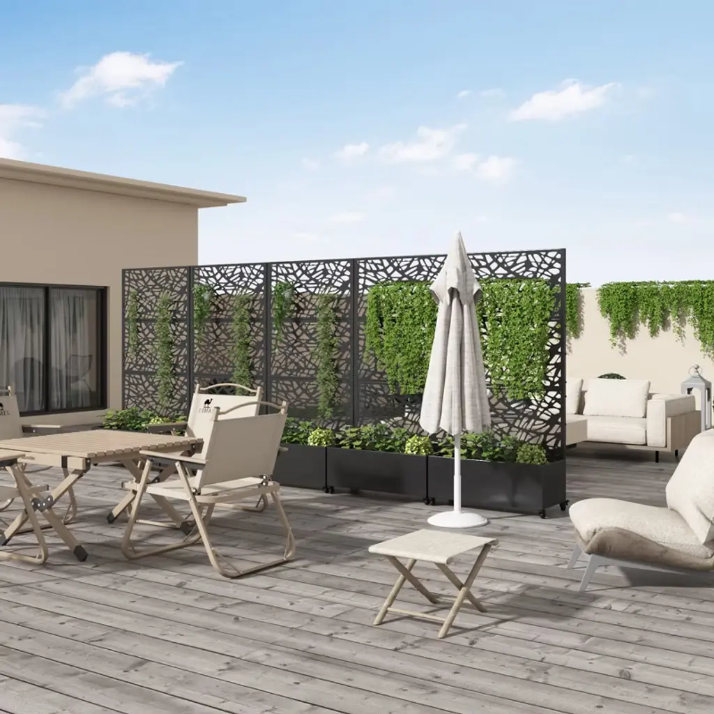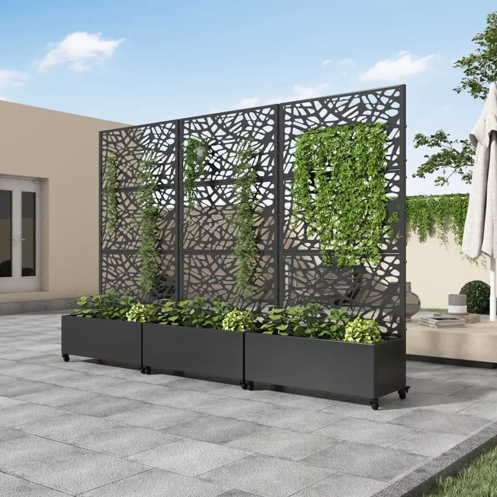 Introducing the Metal Planter Box with Trellis Raised Garden Bed with Arbor Privacy Screen with Wheels - the ultimate solution for creating a beautiful and functional outdoor or indoor space. This versatile garden bed combines the elegance of a trellis with the practicality of a raised bed. It also can be a perfect choice as a privacy screen when creating more beauty for your home.