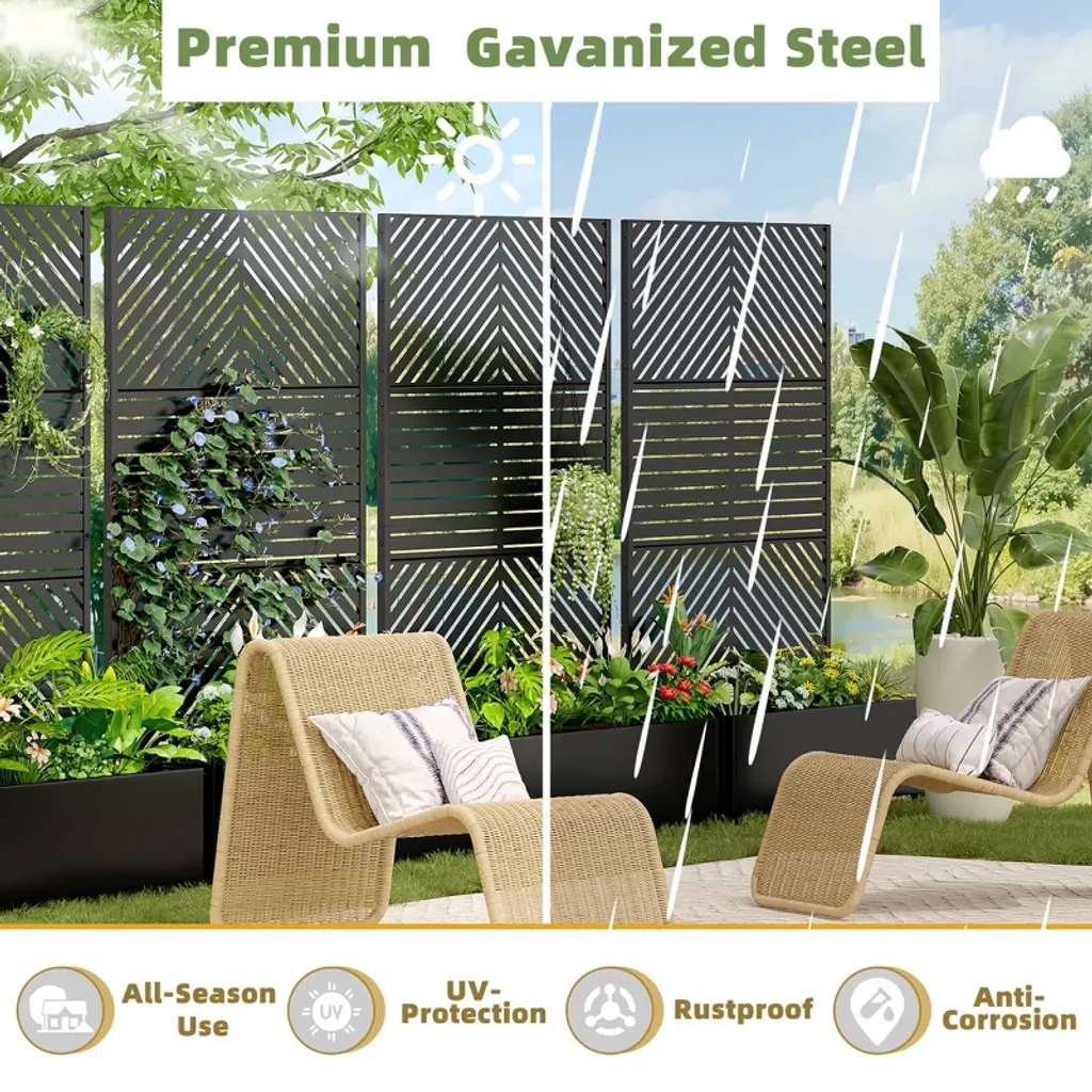 Introducing the Metal Planter Box with Trellis Raised Garden Bed with Arbor Privacy Screen with Wheels - the ultimate solution for creating a beautiful and functional outdoor or indoor space. This versatile garden bed combines the elegance of a trellis with the practicality of a raised bed. It also can be a perfect choice as a privacy screen when creating more beauty for your home.