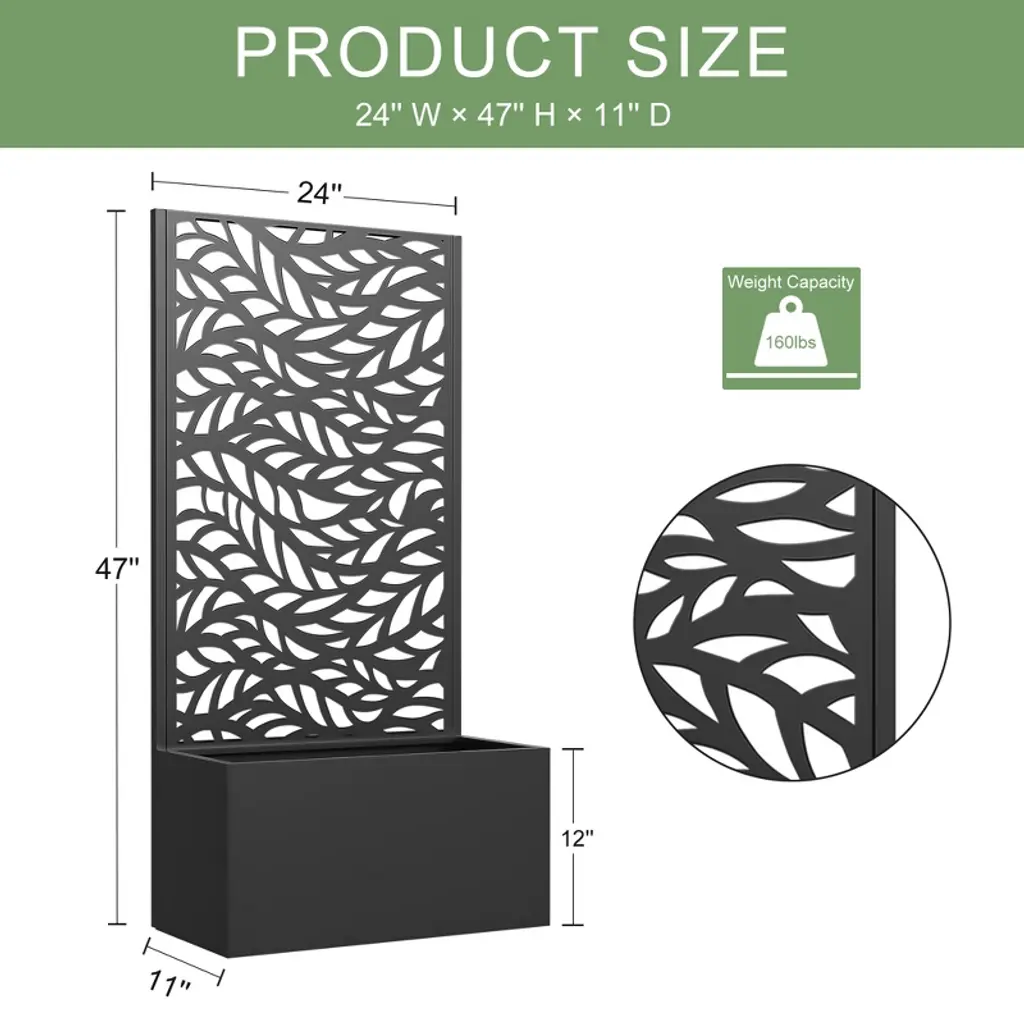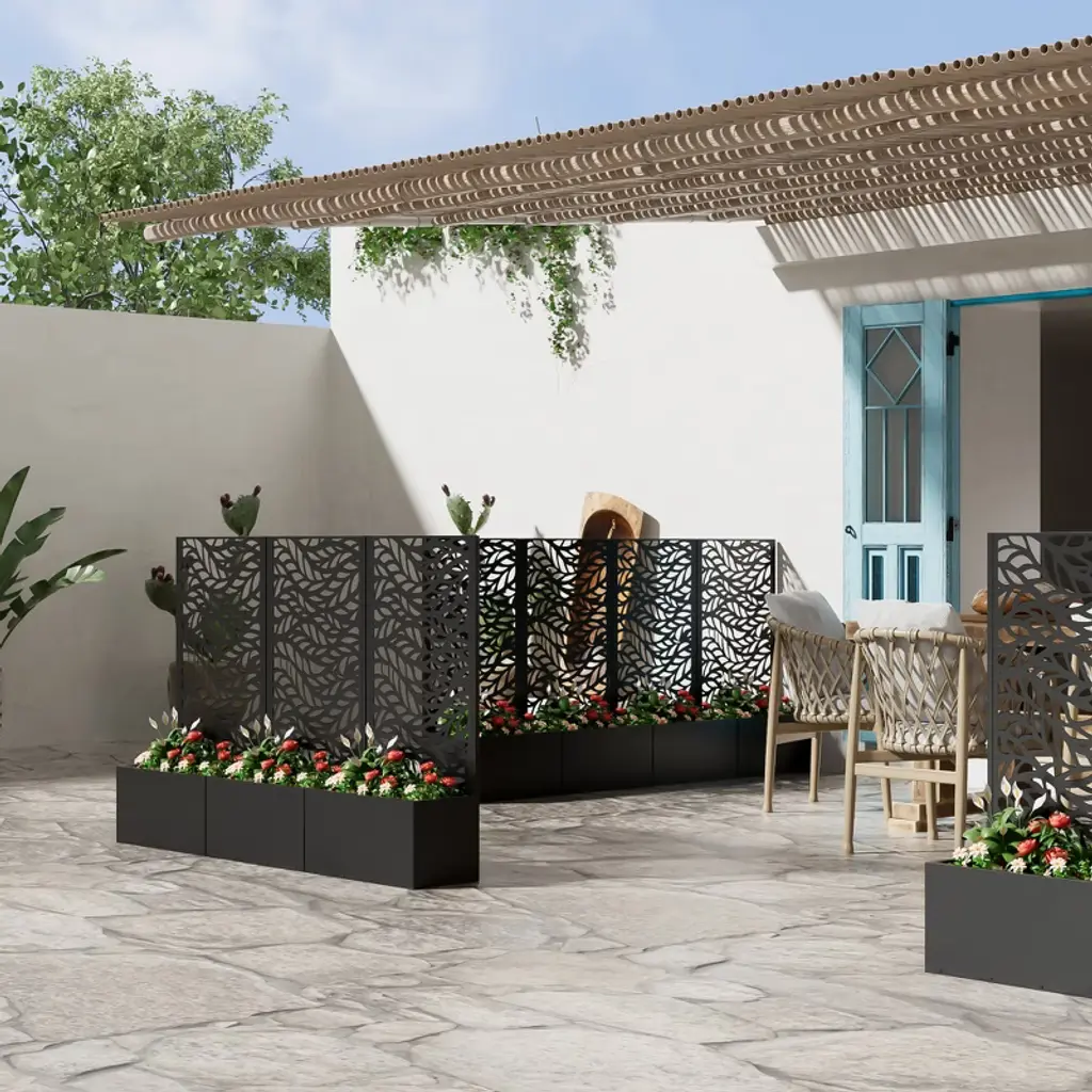 Introducing the Metal Planter Box with Trellis Raised Garden Bed with Arbor Privacy Screen with Wheels - the ultimate solution for creating a beautiful and functional outdoor or indoor space. This versatile garden bed combines the elegance of a trellis with the practicality of a raised bed. It also can be a perfect choice as a privacy screen when creating more beauty for your home.