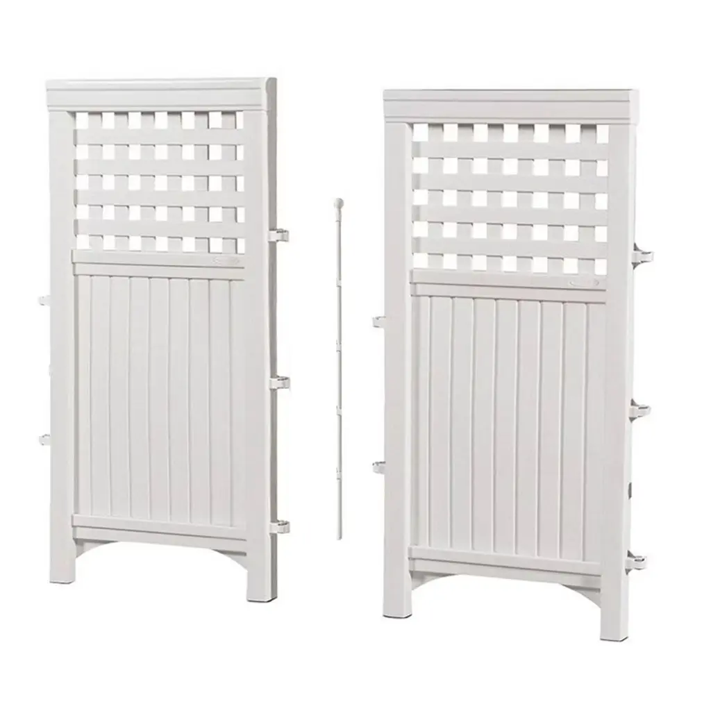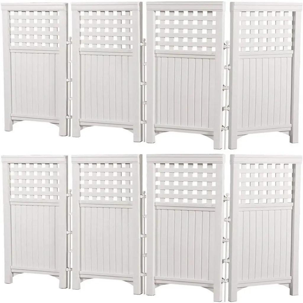 Suncast Outdoor Patio Garden 8 Panel Yard Screen Enclosure Gated Fence, White