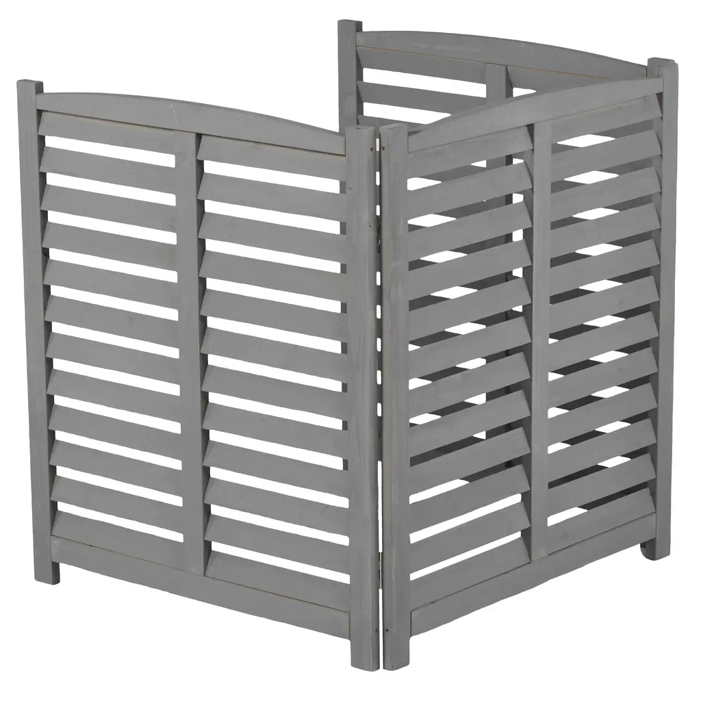 Conceal unsightly air conditioners, garbage cans or dumpsters with this Suncast Outdoor Screen Enclosure. This enclosure includes 8 panels and 10 posts that can be arranged in an "L", "U", or zig-zag shape. Made of durable resin, this Suncast Outdoor Screen Enclosure offers steel posts with a water-resistant, powder-coated finish. This Suncast Outdoor Screen Enclosure is easy to set up, making it very versatile. Each panel is 44 inches tall and 23 inches wide. This panel set measures 92.5 inches wide altogether. Since the design does not stand freely, make sure to secure the panels in the ground with stakes (not included) to withstand the elements. This decorative screen keeps your lawn impeccable.