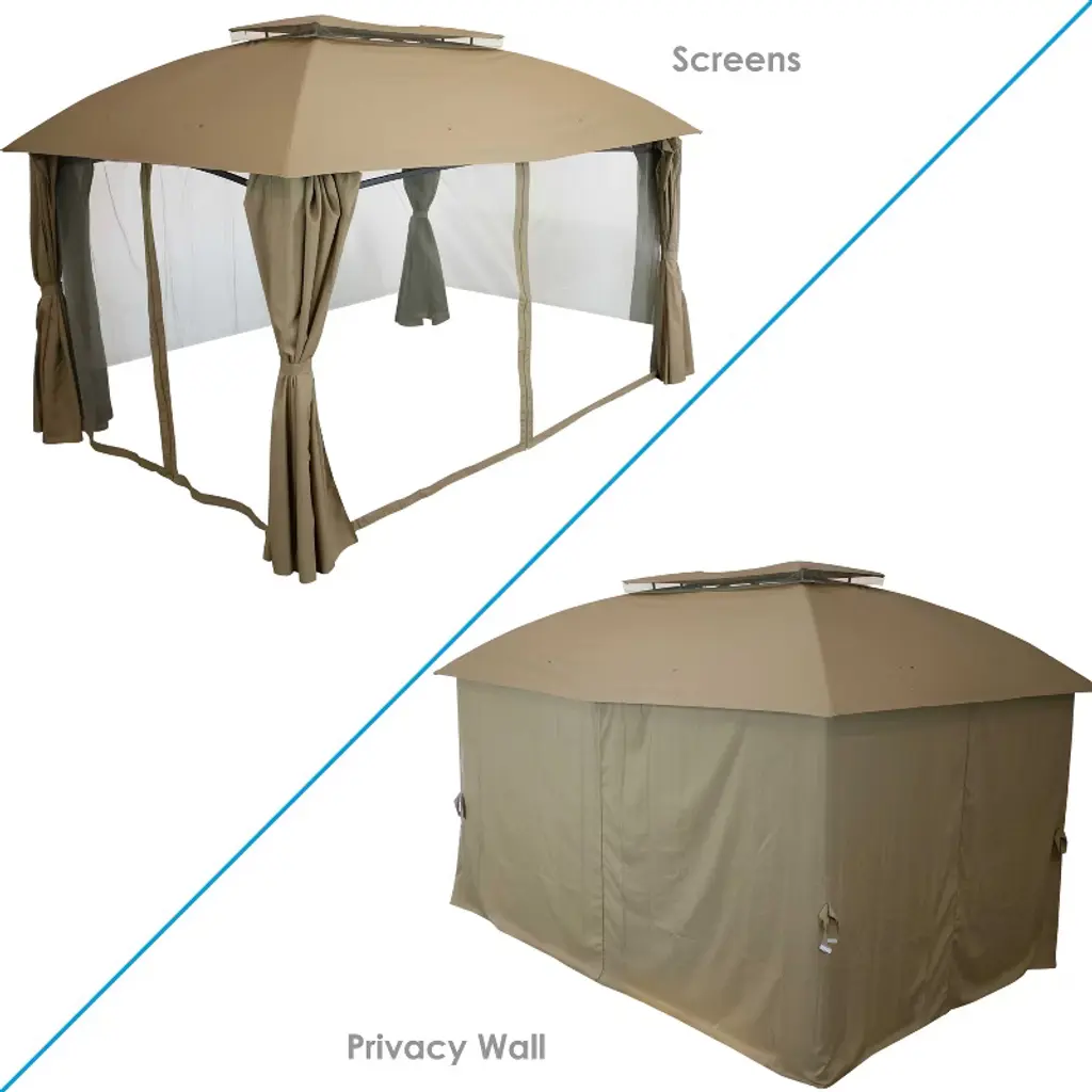 Sunnydaze Soft Top Rectangle Patio Gazebo With Screens And Privacy Walls For Backyard, Garden Or Deck - 10' X 13' - Tan