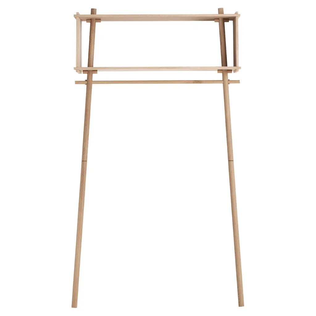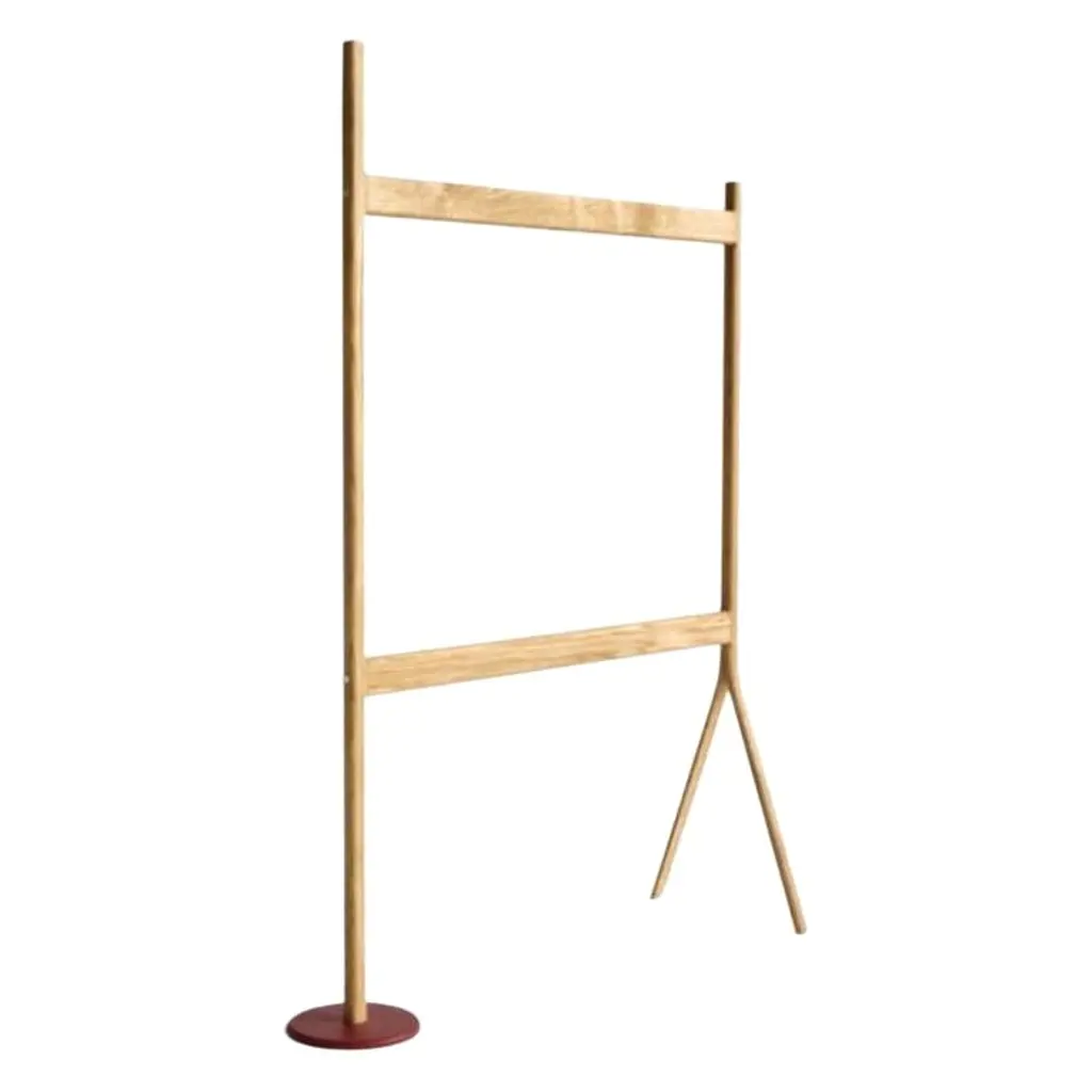 Telo Screen, Natural Oak Frame And Red Lacquered Base, Minimalist Modern Design