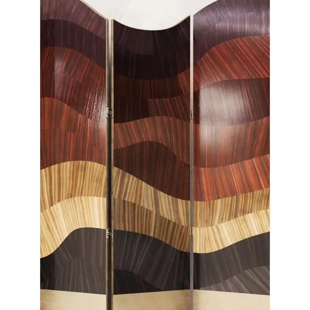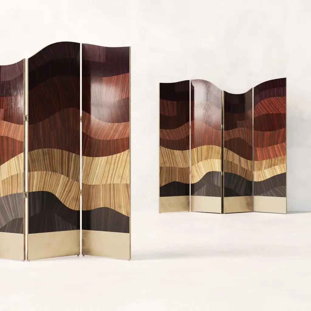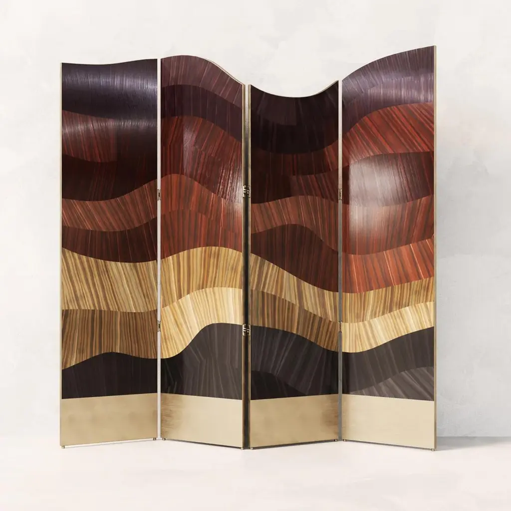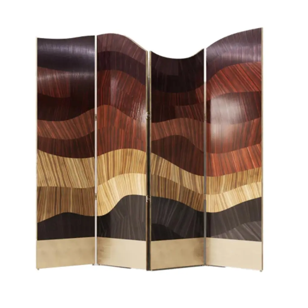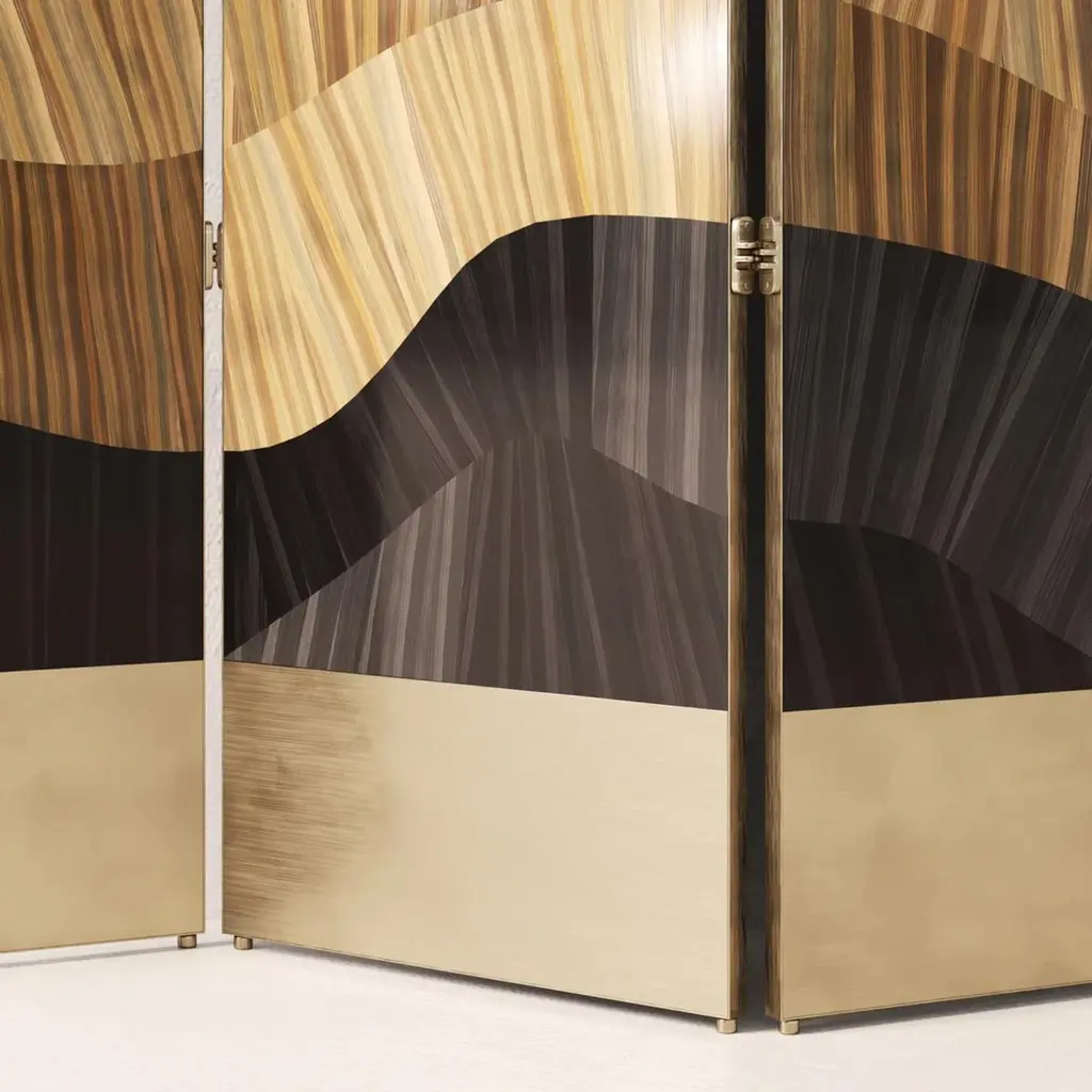Terra Screen by Ruda StudioDimensions: W 200 x H 190 cm.Materials: MDF, painted rye straw, brass and wax.Weight: 30 kg. Design brand RUDA Studio was founded in 2017 by Oleksandra Rudenko and Yuriy Vovnyanko. RUDA Studio - Ukrainian artisanal atelier with harvest of Fine Craft Design.In the atelier we create unique household items. The studio seeks to make each project individual and special, focusing on feelings, custom items, and the combination of the historical and the modern. Our creations are inspired by natural materials and ancient craft techniques. Each product has its own function, but is more like an object of art that touchesthe soul. The vision of interior items encourages us to preserve and actualize our cultural heritage. In our works, we restore knowledge about Ukrainian folklore, pay attention to socially important topics and focus on the interaction between humans and nature. In the studio, objects are created from local materials - brass, copper, clay, straw, algae, trees, andstone.