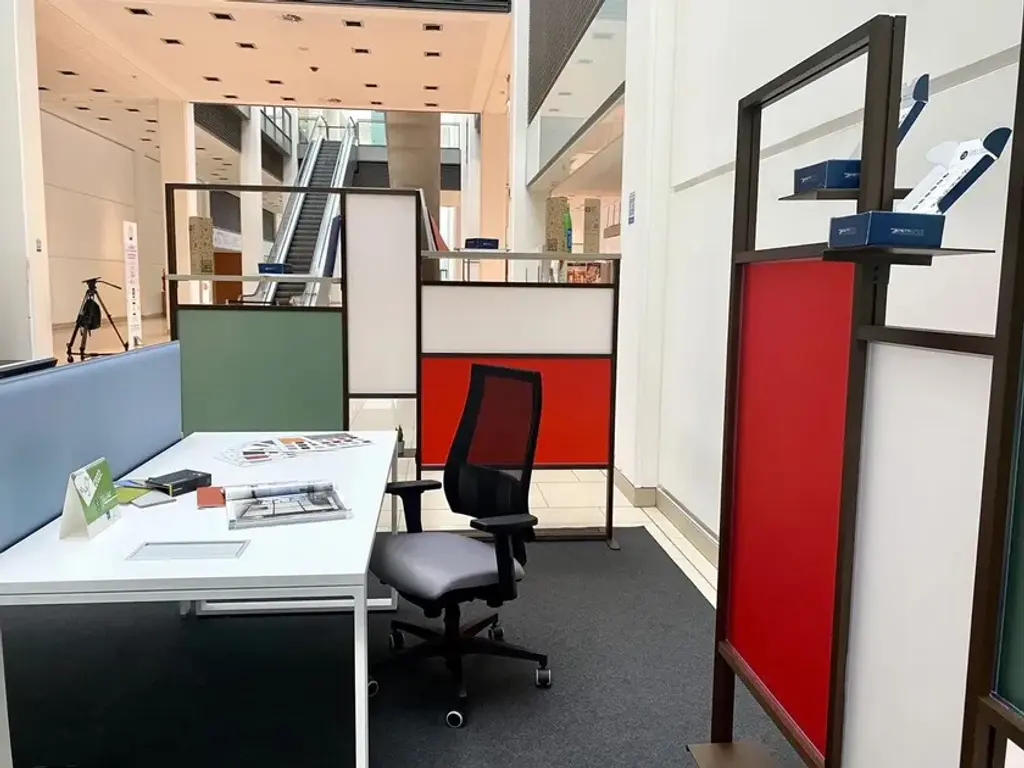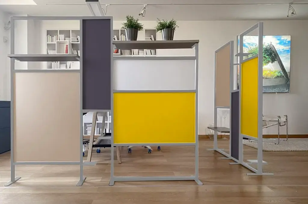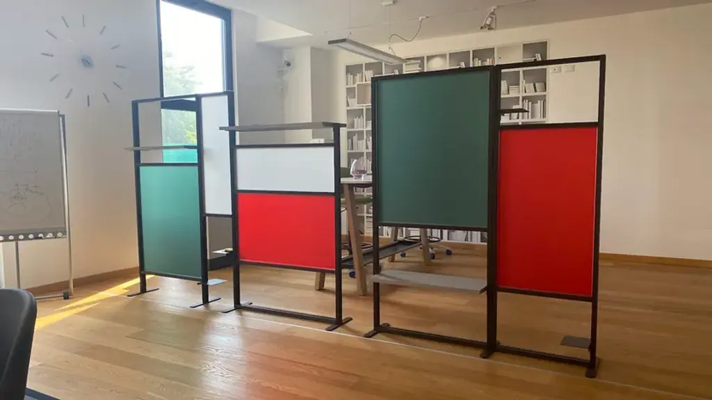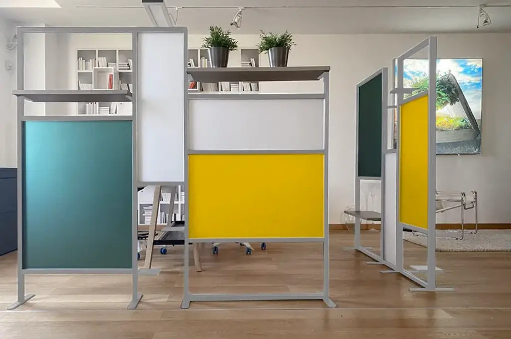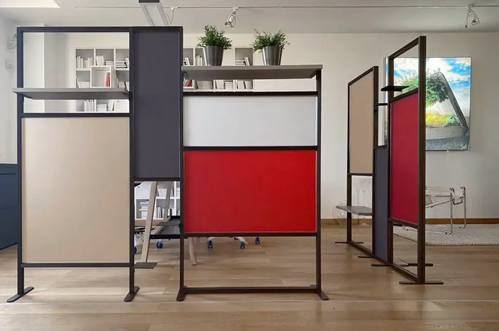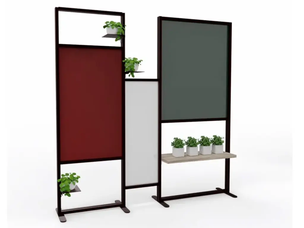 Tetrix quadro is the a self-supporting coloured partition that divides and furnishes rooms such as offices, waiting rooms, doctors' offices, living rooms and kitchens. It is composed of coloured panels that allow light to filter through and shelves to furnish with plants, objects, books. Its large dimensions provide excellent coverage with an essential design style. Complete with three 20x16 cm metal shelves and a 79 cm linen finish melamine shelf. Corten-coloured frame and panels in brick red, forest green and white.InUno is a collection of divider panels, exhibition display panels, notice racks, posters, brochure racks, totems and signage, and lots of solutions. It is a line that is fully configurable in structure, size, colors, and prints to meet different style, space, and brand requirements.