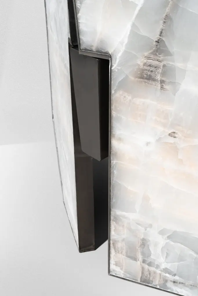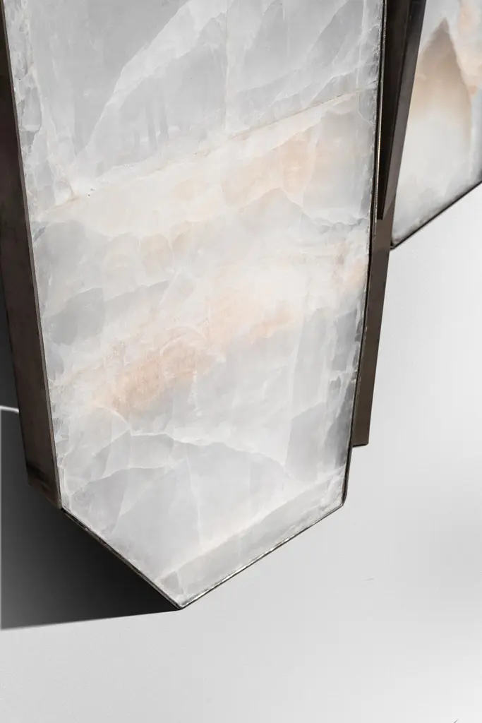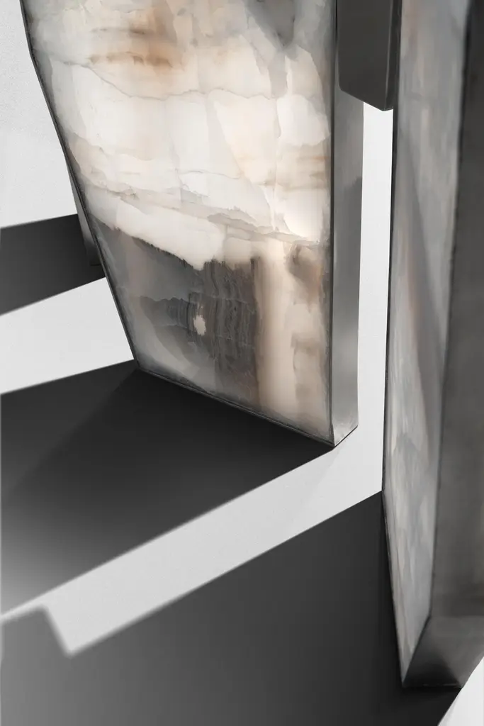 The Onyx Screen by Giampiero TagliaferriLimited Edition Of 8 PiecesDimensions: D 5 x W 175 x H 180 cm.Materials: White onyx and steel.Giampiero Tagliaferri is opening the doors of his new Studio to Galerie Philia for their first Los Angeles exhibition.Giampiero Tagliaferri is an architecture and interior design studio, situated in both Los Angeles and Milan, specializing in the development of residential, retail, and hospitality projects. The studio’s vision is distinguished by the convergence of Italian design from the past century and the modernism prevalent in Southern California. Each project is crafted with a compelling narrative that interprets its cultural and local context, infused with a touch of poetry and drama. Drawing inspiration from diverse sources such as art, pop culture, and various architectural movements, the studio creates emotionally engaging spaces. Notably,their evocative work has garnered the attention of a discerning clientele, including young tech billionaires, prominent art collectors, and entertainment executives who have commissioned projects on a global scale.In his contribution to Galerie Philia’s “Materia Perpetua” exhibition, Giampiero Tagliaferri crafts a piece that intricately plays with the inherent translucency of onyx stone. Entitled “Foglie,” the screen draws inspiration from the delicate structure of tree leaves. Serving a dual purpose, it not only establishes a sense of privacy but also allows the gentle play of light to filter through its surface. The irregular shape of each panel serves as a reverent nod to nature, introducing an organic quality. However, this natural homage is juxtaposed by the angular geometry incorporated into the design, creating a captivating tension between the organic and the artificial. This deliberate interplay of elements stands as a testament toTagliaferri’s design philosophy, where the coexistence of natural and artificial elements becomes a central theme.