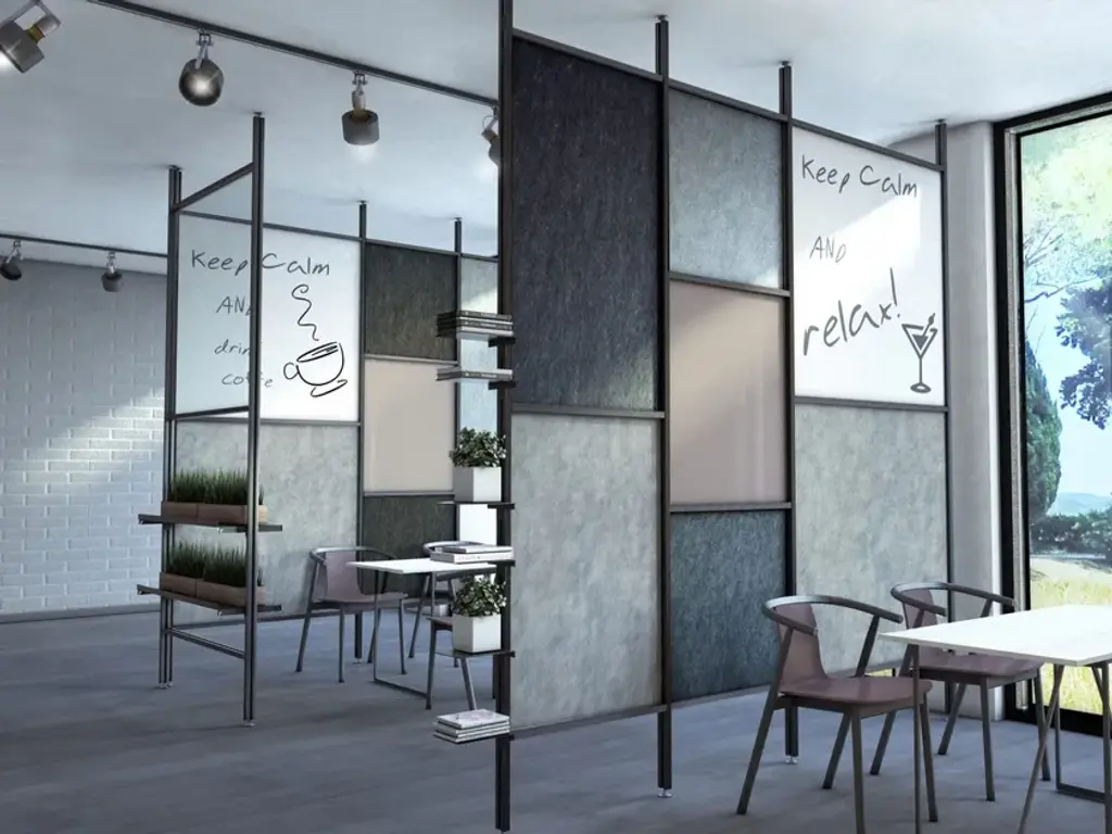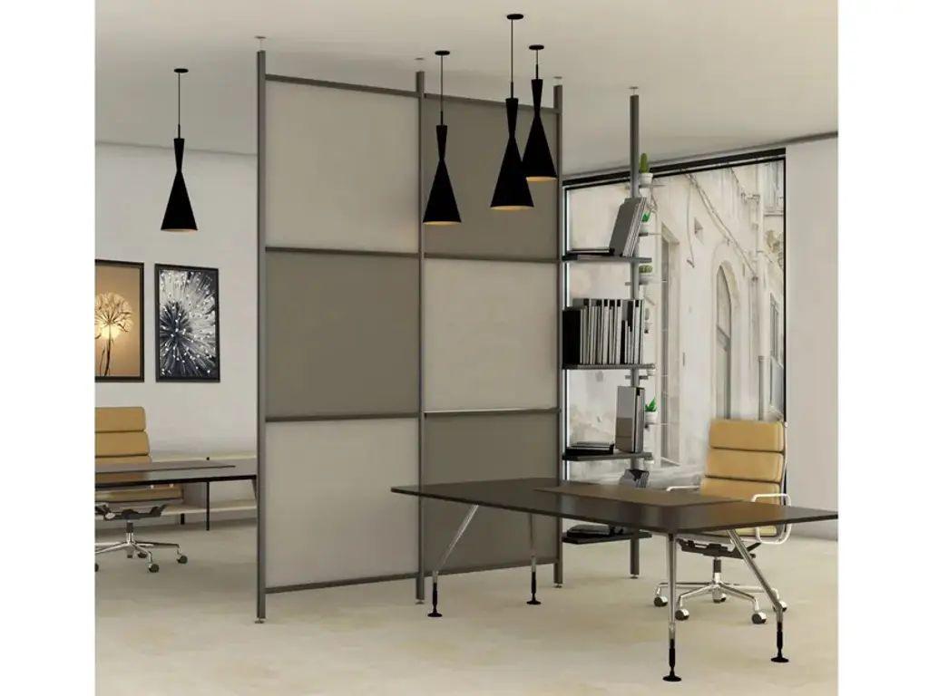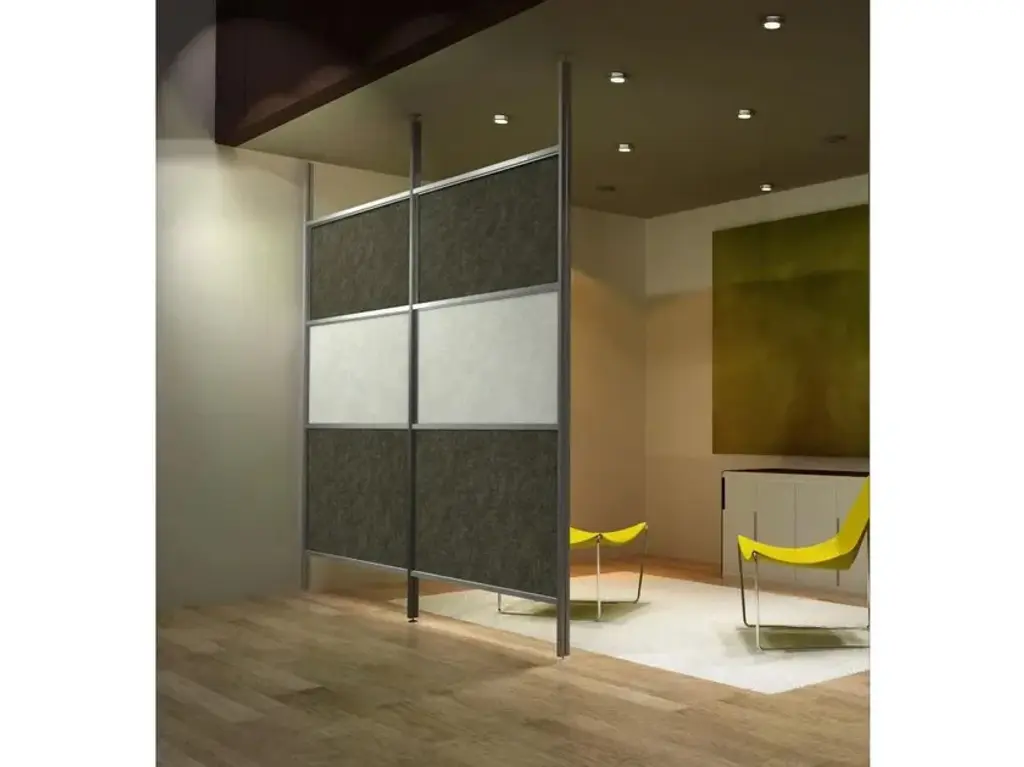Tosca floor-to-ceiling is the sound-absorbing partition wall designed for workspaces and co-working areas. It creates perfect space separation and excellent acoustic absorption. With its floor-to-ceiling fixing system, it ensures optimal division of space and reduces echo thanks to the high-efficiency sound-absorbing PET felt panels. Ideal for providing privacy, acoustic comfort, and clear zoning of environments.Aluminum structure, Silver finish (white, black, and corten available on request)Panels made of certified high-efficiency sound-absorbing felt, 9 mm thickChoose from 5 standard colors: Moon Grey, Turquoise Blue, French Blue, Jungle Green, Denim BlueAdditional 64 colors available on requestPanels made from 60% recycled PET felt, fire-retardant and 100% recyclableMeets DIN E fire protection requirementsIdeal for separating two areas thanks to the ceiling-to-floor fixing systemAdjustable partition height, from 250 cm to 300 cmBase module dimensions: W 124 × H 250/300 cmAdditional module dimensions: W 121.5 × H 250/300 cmProduct compliant with CAM (Minimum Environmental Criteria)Tosca is a collection of self-supporting and desk-mounted sound-absorbing dividers designed to enhance the acoustic and visual comfort of contemporary workspaces.Made from high-efficiency sound-absorbing PET felt, it ensures effective absorption of sound waves and contributes to creating quieter, more comfortable, and more productive environments.The anodized or painted aluminum frame provides stability, durability, and elegance, while the fire-retardant and recyclable composition makes each element a safe and sustainable choice.The entire collection complies with the Minimum Environmental Criteria (CAM), confirming it as a responsible and certified solution, ideal for projects that combine technical performance with aesthetic value.Tosca’s high-performance technical felt offers excellent sound-absorption capacity, enabling efficient control of reverberation in open-space environments, meeting rooms, and shared offices.The system is modular and configurable in various compositions — linear, corner, or booth — to create tailor-made solutions based on the needs of the space.With the addition of accessories such as shelves, metal trays, or magnetic panels, Tosca evolves from a simple sound-absorbing wall into a multifunctional furnishing divider, capable of providing privacy, acoustic comfort, and aesthetic value in a single solution.