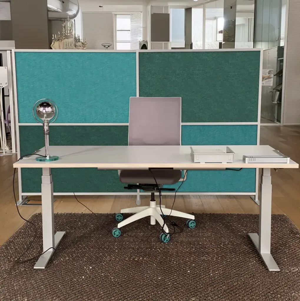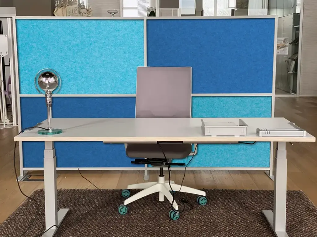 Tosca Quiete is the 160-cm-tall sound-absorbing divider, ideal for workstations or for creating private areas. It provides perfect space separation and reduces reverberation in the environment thanks to its high-acoustic-efficiency PET felt construction.Features:Aluminum frame, Silver finishDivider available in 5 ready-to-ship colors and over 64 variants on requestPanels made of certified sound-absorbing felt, 9 mm thickMade from 60% recycled PET, fire-retardant and 100% recyclableFire reaction class: C-s2, d0, VOC freeMetal support feet, size 35×5 cmSelf-supporting and modular: usable individually or in series for linear, corner, or booth-style partitionsCan be placed anywhere and easily moved when neededAlso available with wheelsProduct compliant with CAM (Minimum Environmental Criteria)Tosca is a collection of self-supporting and desk-mounted sound-absorbing dividers designed to enhance the acoustic and visual comfort of contemporary workspaces.Made from high-efficiency sound-absorbing PET felt, it ensures effective absorption of sound waves and contributes to creating quieter, more comfortable, and more productive environments.The anodized or painted aluminum frame provides stability, durability, and elegance, while the fire-retardant and recyclable composition makes each element a safe and sustainable choice.The entire collection complies with the Minimum Environmental Criteria (CAM), confirming it as a responsible and certified solution, ideal for projects that combine technical performance with aesthetic value.Tosca’s high-performance technical felt offers excellent sound-absorption capacity, enabling efficient control of reverberation in open-space environments, meeting rooms, and shared offices.The system is modular and configurable in various compositions — linear, corner, or booth — to create tailor-made solutions based on the needs of the space.With the addition of accessories such as shelves, metal trays, or magnetic panels, Tosca evolves from a simple sound-absorbing wall into a multifunctional furnishing divider, capable of providing privacy, acoustic comfort, and aesthetic value in a single solution.