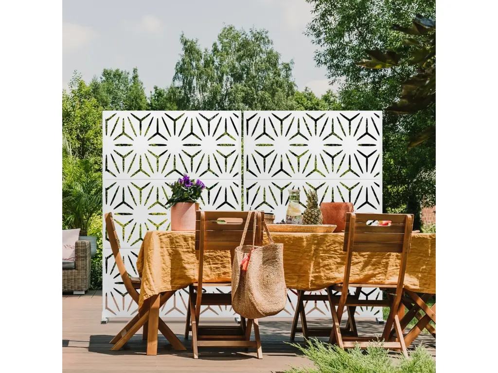 This exceptional privacy fence screen is a versatile choice that not only establishes a secluded space but also shields against intense sunlight. These panels, featuring a distinctive laser-cut pattern, seamlessly mount on walls, adding a decorative touch to your surroundings. Compact yet effective, these privacy screens are perfect for dividing spaces and enhancing the overall layout of any area.