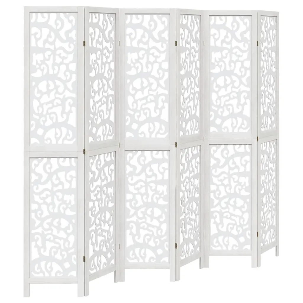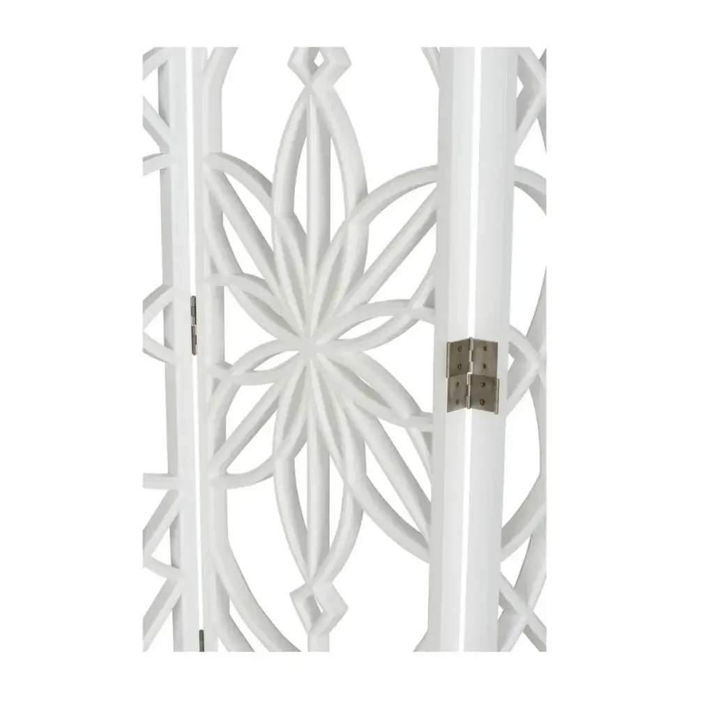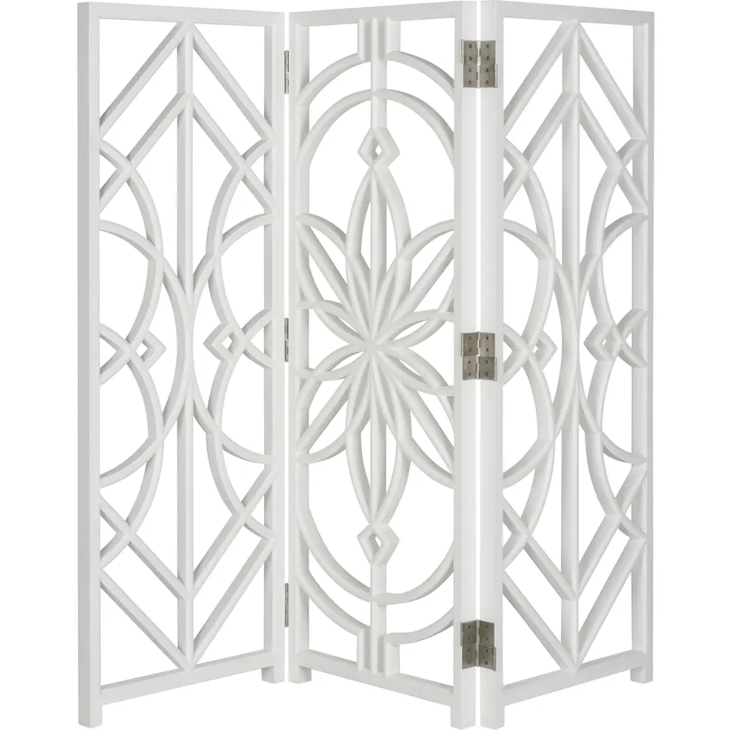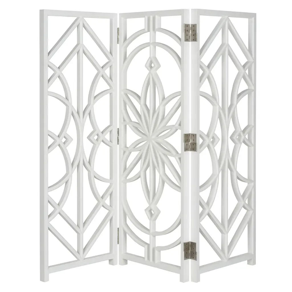 A free standing room divider, the Tree of Life Screen will help bring peace to those rooms that need to create space efficiently. Made of a wood frame with a white finish and a tree of life symbol shaped throughout three panels. Designed by Lisa Kahn.