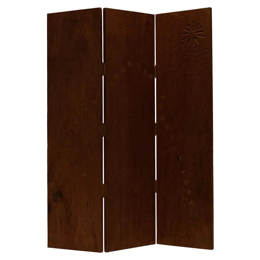 Tri-Fold Solid Walnut Folding Screen Or Room Divider