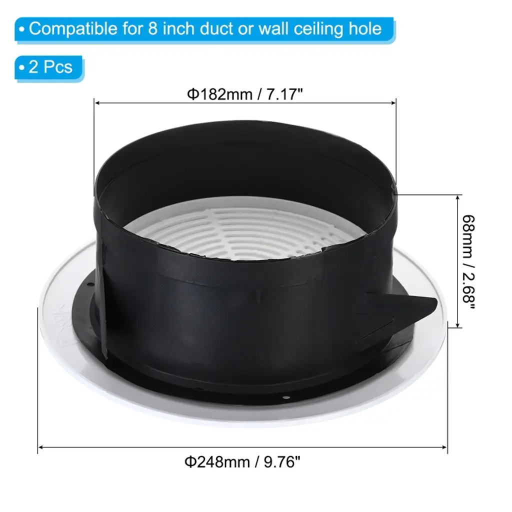 Unique Bargains Abs Plastic Adjustable Round With Screen Bathroom Air Vent Cover 2 Pcs 8 Inch
