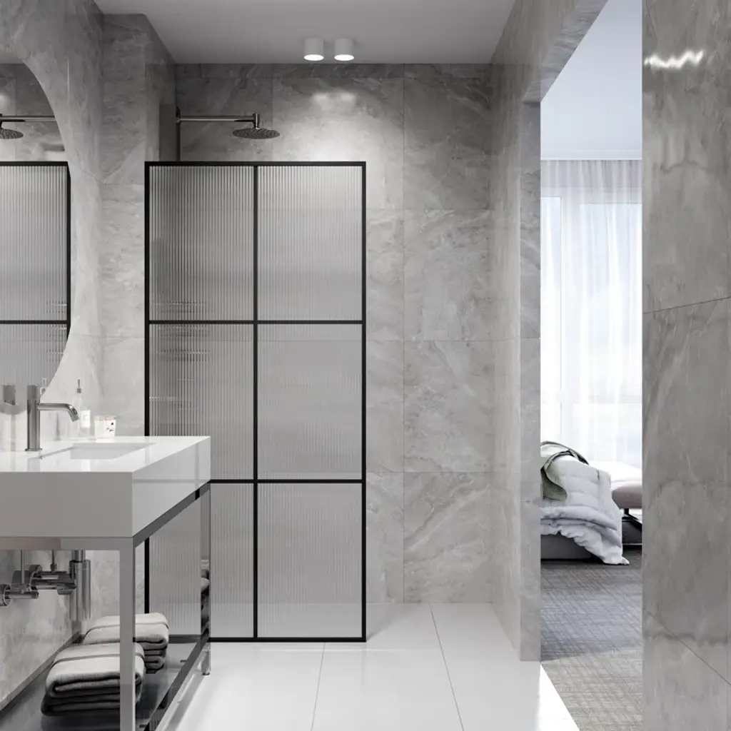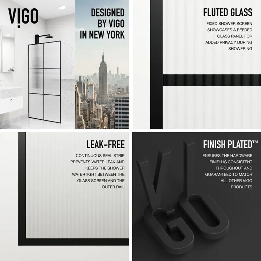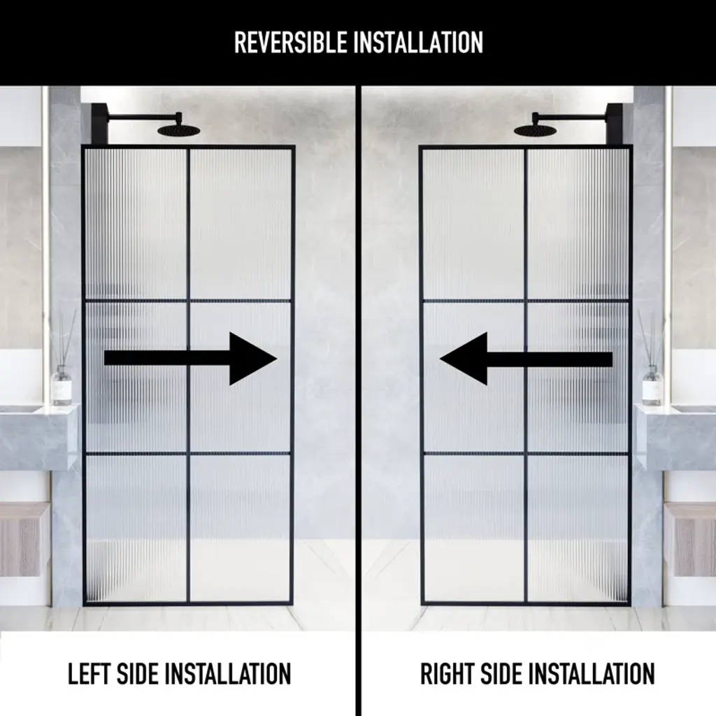 The VIGO Ventana shower screen is a modern and stylish addition to any bathroom, characterized by its distinctive grid pattern that adds a unique architectural element. The grid pattern divides the glass panels into geometric sections, providing a contemporary and industrial aesthetic that seamlessly integrates with various decor styles. Available with either fluted or clear glass options, the VIGO Ventana shower screen allows you to choose the perfect look to enhance your space. The minimalist design not only enhances the overall sense of space and light but also serves as a striking visual centerpiece. The clear or fluted glass panels ensure an open and airy feel, while the black grid pattern offers a bold contrast, accentuating the clean lines and sophisticated design. Perfect for creating a modern, industrial look in your bathroom, the VIGO Ventana shower screen combines form and function, providing a practical solution that enhances the room's aesthetic appeal. The durable construction and high-quality materials ensure longevity and ease of maintenance, making it an ideal choice for those looking to elevate their bathroom decor with a touch of contemporary elegance.